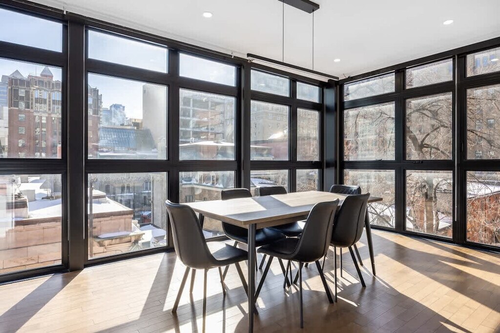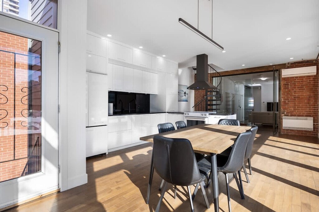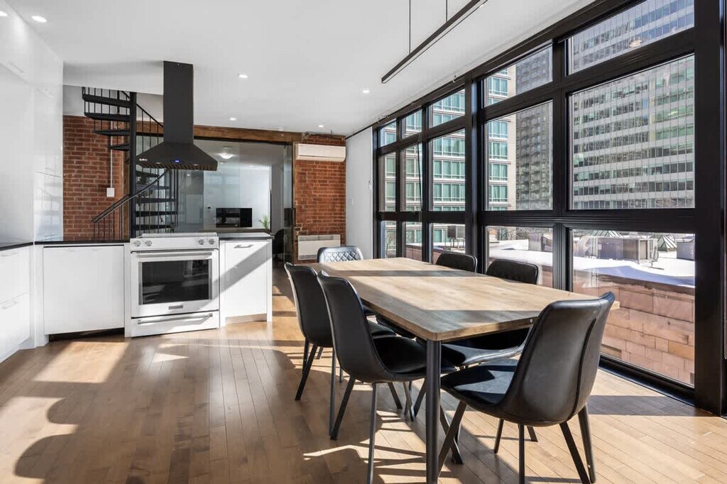 The advertised rate of C$4,800/month is the lowest available price, based on a 30 day(s) stay with a move-in date of October 6, 2026. Rates vary depending on the duration of stay, season, and other parameters. For exact pricing and additional pricing components, please visit our website and enter your desired move-in and move-out dates. The rate is applicable when billed upfront; it can be higher if billed in multiple payments. Feel at home in this beautifully furnished and fully equipped apartment, offering a charming blend of rustic and modern design with gorgeous exposed brick and stone walls, complemented by hardwood floors. This apartment features a spacious open-concept living and dining area, creating a perfect environment for relaxation and entertaining. The kitchen is equipped with high-quality appliances and a stylish central island, ideal for preparing meals or enjoying casual dining. Essential appliances include a stove, refrigerator, dishwasher, microwave, washer, and dryer. Nestled in the prestigious Golden Square Mile neighborhood, this apartment offers the best of urban living. It is just steps away from Peel metro station, the Montreal General Hospital, and cultural landmarks such as the Museum of Fine Arts, the Museum of Contemporary Art, and McGill University. The area is renowned for its vibrant lifestyle, convenience, and historic charm, making it a prime location for those who appreciate city life at its finest. Includes a comfortable office area with natural light streaming from a skylight directly above. [SI]