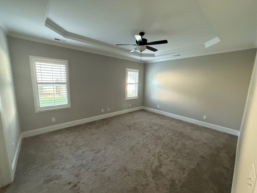 3415 CAMBERLY - RENT $3100, SED DEP $3100. 3350+/-SQ.FT. Welcome to Gates Four, a stunning residence located in the heart of Fayetteville, NC. This home boasts five spacious bedrooms and 3.5 bathrooms, offering ample space for all your needs. The kitchen is a chef's dream, equipped with stainless appliances and a large island topped with beautiful granite. The open concept living area, complete with an electric fireplace, creates a warm and inviting atmosphere for entertaining or relaxing. The master suite, conveniently located downstairs, features a separate soaking tub and his and hers closets, providing a private retreat within the home. The formal dining room adds a touch of elegance for hosting dinner parties or family gatherings. Step outside to the covered and screened patio, perfect for enjoying the outdoors in comfort. The property also includes a three-car garage and a circular drive for easy access and plenty of parking. Experience the perfect blend of luxury and convenience at Gates Four.