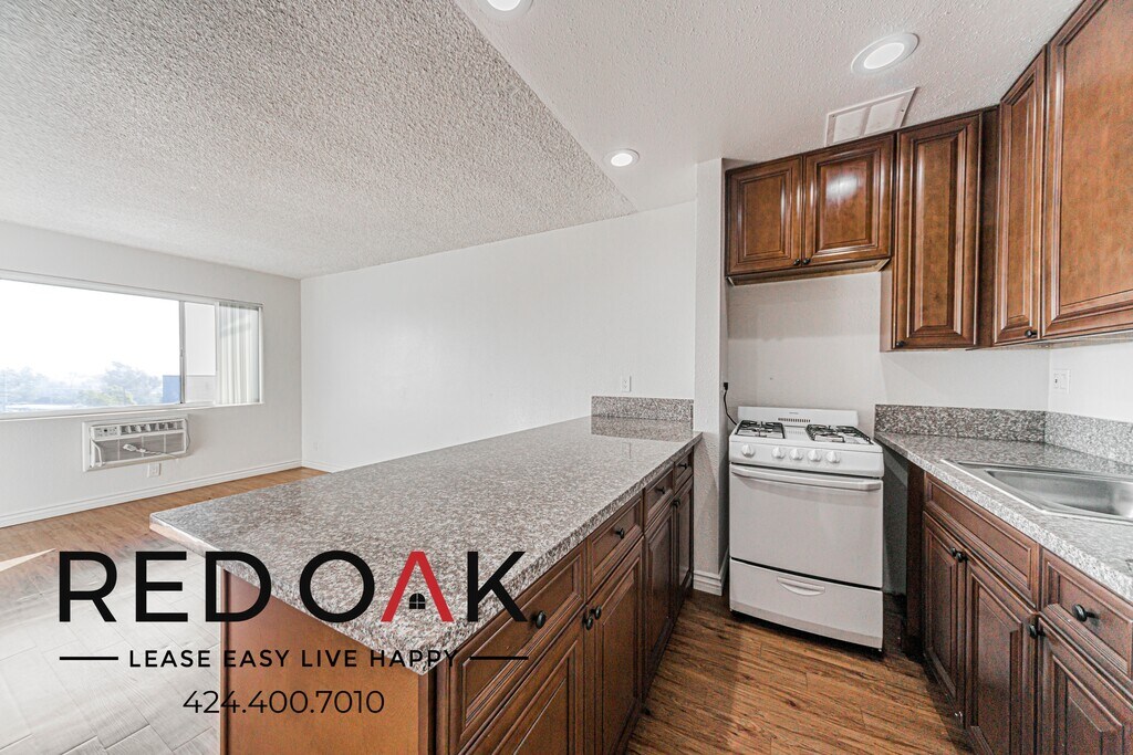 Splendid Studio with Lovely Floors, Naturally Lit, Kitchen Appliances, Pool, Gym, On-Site Laundry and Included Parking ~ In Prime Westwood! Features You Wil Love: ~ Inviting Appeal: Charming blue, gated complex adorned with meticulous landscaping. ~ Naturally Lit: Large windows fill the space with sunlight. ~ Hardwood Style Floors: Enjoy beauty and durability. ~ Temperature Control: Gas furnace and wall-mounted A/C for year-round comfort. ~ Kitchen: Custom cabinets, granite counters, breakfast bar & kitchen appliances. ~ Bath: Modern fixtures, walk-in shower, and ample vanity storage. ~ On-Site Laundry: Convenient facilities for easy washing (a small one-time fee may apply). ~ Parking: A space for your vehicle is included. ~ Internet and Cable: Spectrum services included. ~ Utilities: Water, sewage, & trash for $44/month flat. ~ Refreshing Pool: Sparkling swimming pool, offering a peaceful escape. ~ Fitness Center: Stay active without a gym membership. ~ Convenient Location: Situated near Santa Monica Blvd, this residence offers easy access to a plethora of destinations near and far, ensuring convenience and connectivity for your lifestyle needs. ~ Don't miss out on the opportunity! Available for an immediate move-in. Call to schedule a viewing today! LEASE TERMS: One Year Lease Photos may not reflect the exact available unit. Availability is not guaranteed—please verify all details. Square Footage is approximate. Showings may not be 1-on-1. Listed pricing and special offers are only valid for new residents. Pricing and availability are subject to change without notice and may vary between similar units. Red Oak does not warrant or represent that image renderings on this website are an accurate representation of every floor plan available at the Property. Floor plans may vary unit by unit and by location at the Property. Please contact the Leasing Office to schedule a tour of the Property and the particular unit you are interested in. Pricing and availability are subject to change at any time. **All applicants receive equal consideration; we follow all Fair Housing laws.*