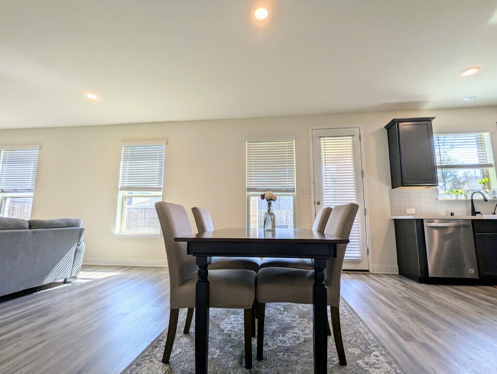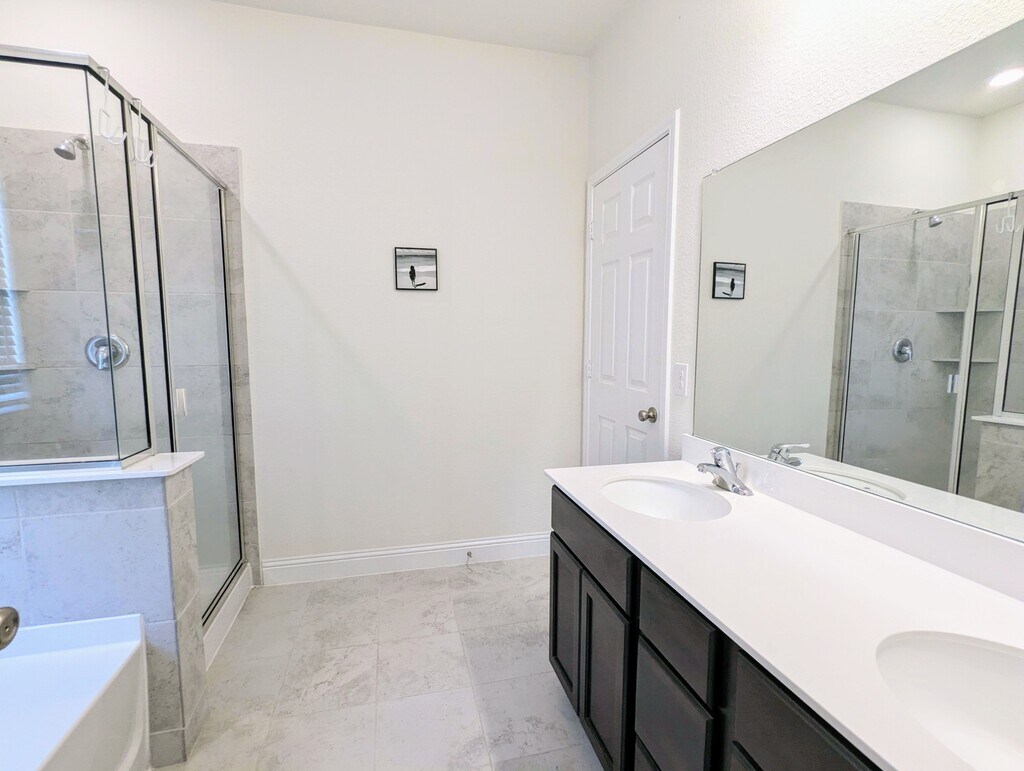 This bright modern NORTH facing 3BR 2Bath Single Family Home is available for lease in the beautiful Creeks of Legacy neighborhood with highly acclaimed PROSPER ISD. Conveniently located near major highways like DNT and Preston road. Located just few miles away from upcoming HEB, COSTCO & India Bazaar. Quick and easy access to shopping, restaurants & entertainments. This gorgeous home boasts an open floor plan with abundant natural light draping the living and dining area. Get ready to entertain for the holiday season in the gourmet kitchen featuring a large quartz island, abundant storage and prep space and stylish stack bond backsplash, SS appliances including electric range, smart oven with touchscreen and google assistant, fridge and dishwasher. Luxury Vinyl flooring throughout the living area, kitchen and main bedroom for sleek look and easy maintenance. Primary suite is spacious with walk-in closet and spa-like en-suite bath with a separate tile surround shower, large garden tub and dual vanity! Both the secondary bedrooms come with their own closets. This house features two dining area and formal dining area can double up as office space. Unwind your day in the covered patio and oversized yard perfect for kids and pets to play and hang out. Additional home features - RO water in the kitchen, water softener throughout the house, blinds on all the windows, thermostat, sprinkler system, tankless water heater, 2 car garage with epoxy coating and smart garage door. All appliances included - Dishwasher, Gas Cooktop, Disposal, Gas Water Heater, Microwave, REFRIGERATOR and WASHER & DRYER. Neighborhood Features : Playground, Amenity center, Basketball court, Fitness Center, 2 Swimming Pools and a Dog Park.