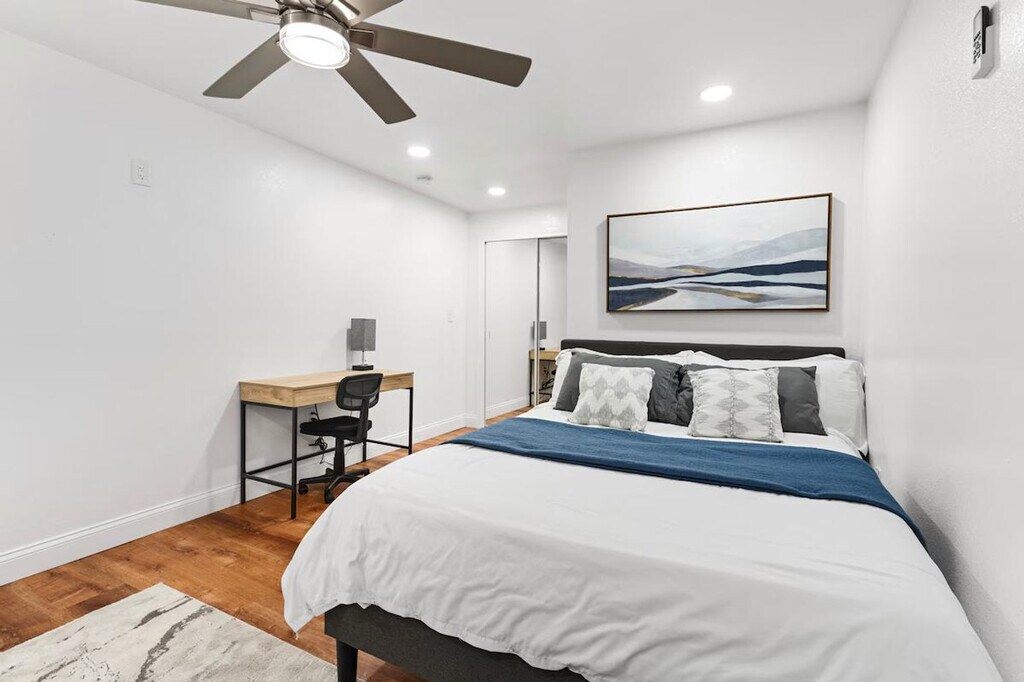 Feel at home in this cozy guesthouse retreat, perfect for solo travelers, couples, or small families. Located in a quiet neighborhood, it's just minutes from local attractions. The guesthouse features a bedroom with a comfy queen bed, a bright and cozy living area with a sofa and large windows, and a full bathroom with a walk-in shower. The kitchen is equipped with a full-size fridge, stove, microwave, air fryer, coffee maker, and basic essentials. Pets are welcome with a non-refundable pet fee of $150 per pet. The guesthouse is conveniently located near various attractions and facilities. It is 2 miles from Armature Works, 2.1 miles from Downtown Tampa, 2.5 miles from Riverwalk, 2.6 miles from Amalie Arena, 2.7 miles from Florida Aquarium, 3 miles from Hyde Park, 4.3 miles from Ybor and Raymond James Stadium, 5.4 miles from Davis Islands, 7.1 miles from Busch Gardens, 7.4 miles from International Plaza, and 8.6 miles from Bayshore. It is also near the University of Tampa (3.4 miles) and USF University of South Florida (10.2 miles). Tampa International Airport is 8.3 miles away, and MacDill Air Force Base is 16.8 miles away. Several hospitals are also nearby, including St. Joseph Hospital (3.3 miles), Tampa General (3.7 miles), Moffitt Cancer Center (4.6 miles), AdventHealth Carrollwood (6.3 miles), James A. Haley (9.3 miles), Kindred Hospital (9.5 miles), HCA Brandon (12.1 miles), AdventHealth Brandon (18.6 miles), and AdventHealth Tampa (20 miles). Self check-in is available via smart lock. Includes workstations with a desk and chair and high-speed Wi-Fi.