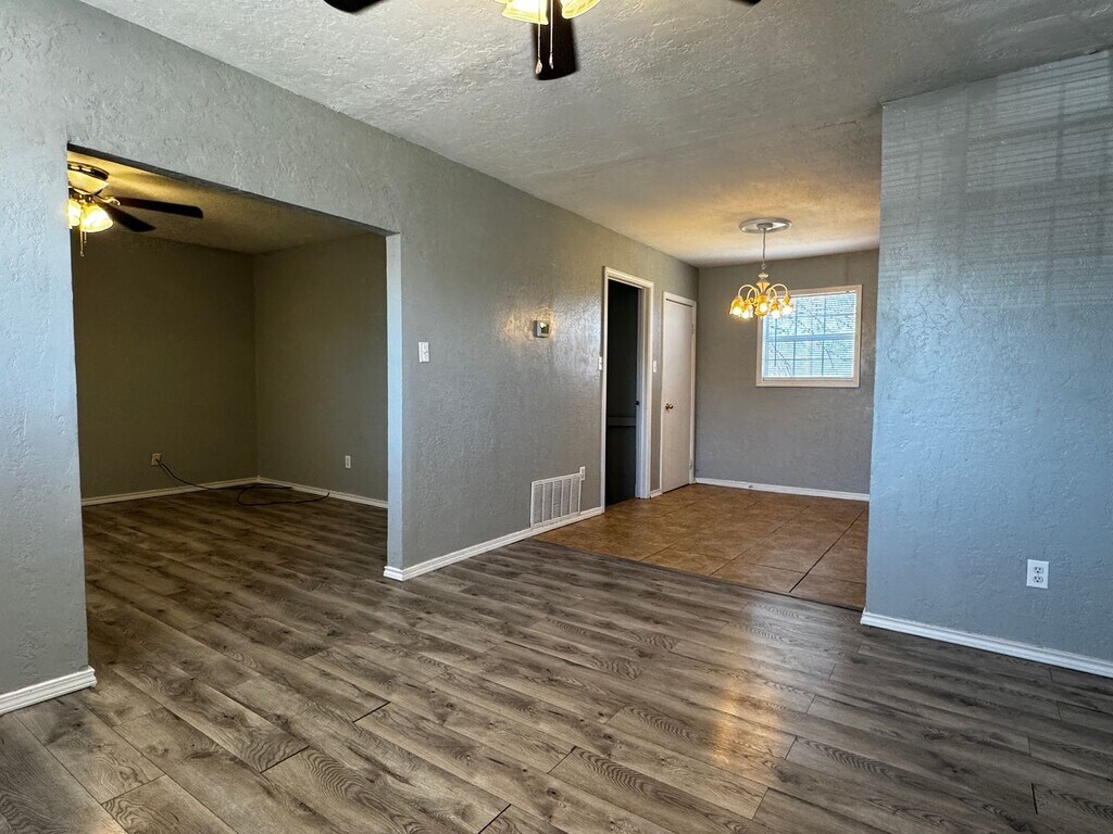 Discover this well-maintained 3-bedroom, 1-bath home in Lawton, OK featuring an open living area and a second living space for flexible layouts. The interior is updated with luxury vinyl plank flooring throughout, and the exterior has brand new siding. Enjoy a large fenced-in backyard—ideal for outdoor activities—and a pet-friendly policy allowing up to two pets. This property combines functional living spaces with recent updates for comfortable everyday living.