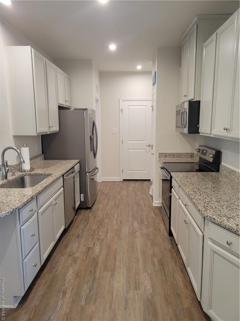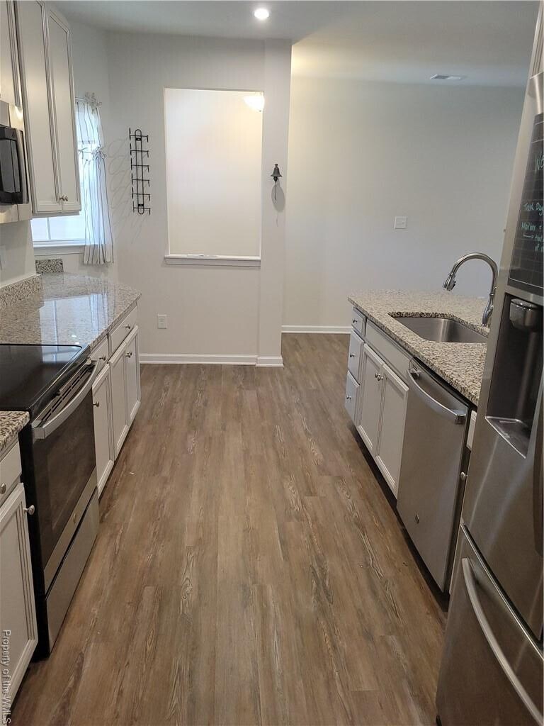 This charming townhome built in 2021 offers the perfect blend of comfort and elegance! There are three spacious bedrooms, and 2 1/2 modern bathrooms in 1711 square feet. As you step inside, you are greeted by a warm and inviting living area with luxury vinyl flooring. The open floor plan seamlessly connects the living room to the dining area and the well-appointed kitchen. The kitchen features granite countertops, lovely cabinetry and modern appliances, catering to all your culinary needs. The primary suite has a generous walk-in closet and an en-suite bathroom featuring double vanity and walk-in shower. Laundry room - washer and dryer included - and powder room complete the downstairs. The additional two bedrooms upstairs are equally spacious and share the second full bath. Outside there is a patio overlooking the yard with green space behind it. Stonehouse Townes has great amenities including a pool, playground, tennis courts, walking trails and clubhouse. 1 yr lease - available October 16th- No pets.