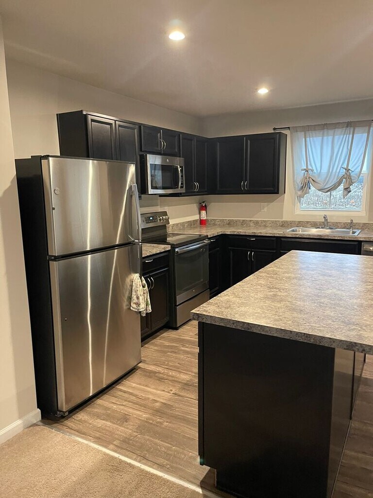 2 story, 4bedroom, 2.5 bath home. Open 1st floor open plan with office/ study off kitchen. Kitchen with stainless steel appliances, center island, panty and slider to large rear deck. Main bedroom has full bath with shower stall. 2 of the other 3 bedrooms have walk-in closets. Laundry room with washer and dryer located on 2nd lever. 2 car oversize garage. Full unfinished basement. Tenant is responsible for all utilities, trash, snow removal and landscaping. For more info or to fill out an application go to or call .