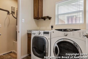 3 bedroom/ 2 bath home features matching stainless steel appliances including: refrigerator. microwave oven, dishwasher, garbage disposal electric range/oven. Granite counter tops and island in kitchen area. Open-Floor Plan, Faux Wood Blinds, Pre-wired for Security, Close to ATT center and downtown San Antonio, and major highways to travel all throughout San Antonio