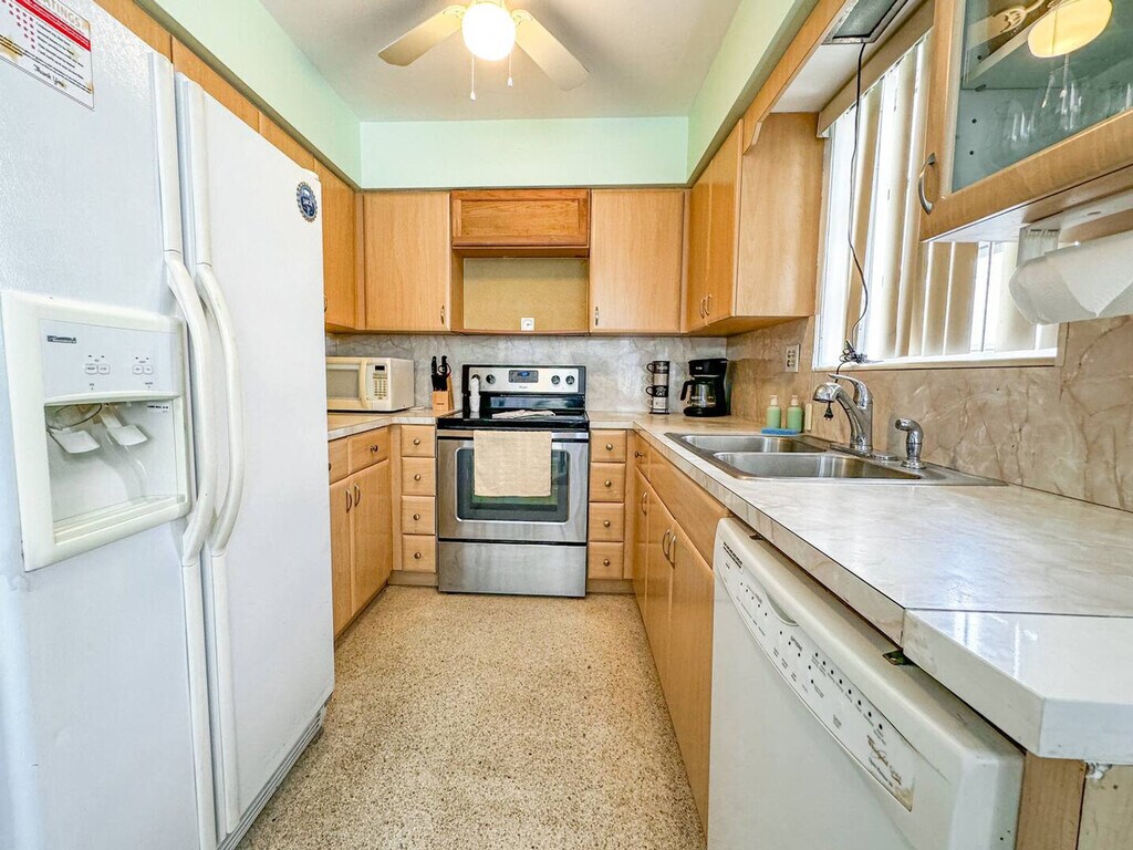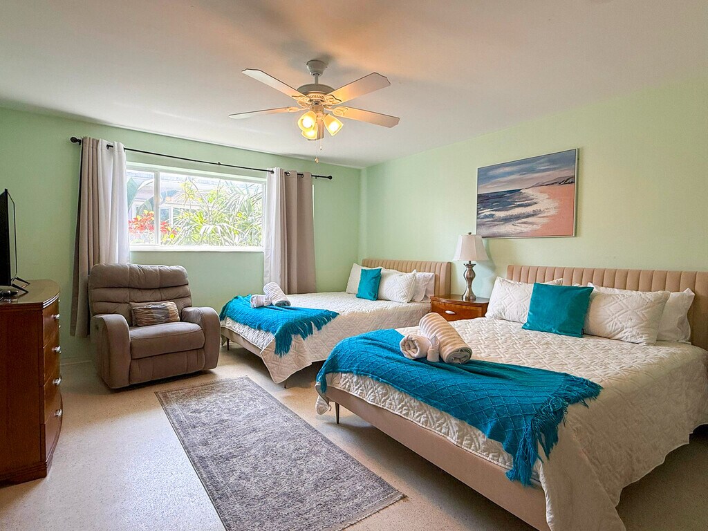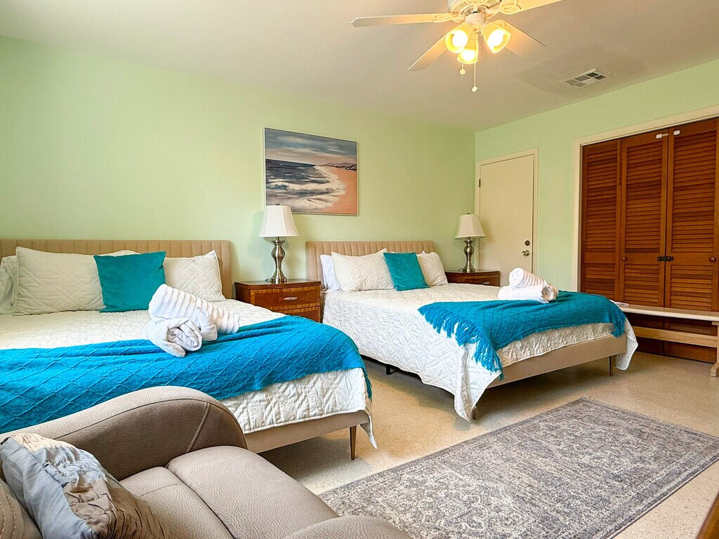 Feel at home in this charming 1-bedroom retreat in Hollywood, Florida, just steps from the beach. This stylish apartment features 2 queen beds and a comfortable sofa bed, providing flexible sleeping arrangements. The fully equipped kitchen and dining area make it easy to cook your favorite meals. Relax in the cozy living room with a large TV or enjoy the spacious private patio/balcony. Beach essentials and a BBQ grill are provided for sun-filled days and outdoor enjoyment. Free on-site parking is available, with additional paid parking nearby. Up to 2 pets are allowed per stay, with an additional fee for each pet. Located between Miami and Fort Lauderdale, this apartment offers unbeatable access to South Florida's attractions. You'll be a 2-minute walk to the beach and close to the iconic Hollywood Beach Broadwalk, West Lake Park, Margaritaville Resort, ArtsPark at Young Circle, and more. Nearby transportation options include Fort Lauderdale Airport Station, Hollywood Train Station, and Miami International Airport. Quiet hours are from 11:00 PM to 7:00 AM. No parties or events are allowed. If the BBQ grill is not left clean, a $100 cleaning fee will be charged. If items are missing, damaged, or stained, an extra fee may apply. High-speed Wi-Fi and a dedicated workspace make this apartment perfect for remote work. [SI]