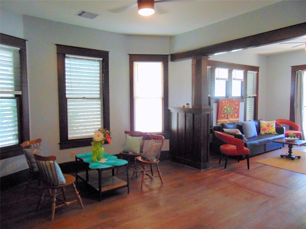 Step into this beautifully preserved and renovated Craftsman home 2 blocks to the beach with a 2 car garage plus workshop area. This 1930s home has its original hardwood floors,attic fan and gas heaters in 2 bedrooms - they offer a timeless elegance you rarely find today. Historic charm meets modern conveniences with quartz countertops,PEX plumbing,new central AC and heat,an added bathroom,renovated main ensuite bathroom,tankless water heater. Enjoy the sea breezes from the front porch and the birds from the back porch. Fill your kitchen with fruit from the citrus tees in the summer. A historic treasure on high ground with modern comforts and no history of flooding. Did not flood with Hurricane Ike. Don't just imagine it - come see it for yourself! MLS# 10791657