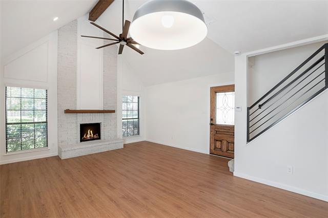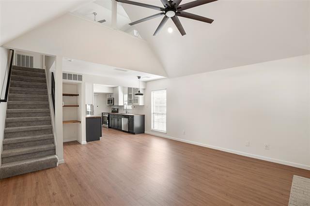 Doug WingfieldWelcome to this inviting home in the highly desirable Briaroaks neighborhood of Garland, wherecommunity pride meets easy access to amenities and a metropolitan feel. Briaroaks is known forits residential charm, well-kept homes and proximity to Garland s shopping, dining and otherconveniences. The neighborhood has strong appeal for those desiring a quiet, yet connectedcommunity. Step inside and you ll appreciate the volume and light: soaring ceilings downstairs open up thespace, while an abundance of windows floods the interior with natural light. Living room has anamazing wood burning fireplace with a mantle. The modern, beautifully updatedkitchen features recent stainless-steel appliances (refrigerator, smooth top range with convectionoven & dishwasher), soft-close cabinetry, butcher block countertops and upper cabinets withelegant glass-front doors and adjustable shelves. A stacked washer & dryer are included for yourconvenience. Zoned AC units ensure efficient cooling and comfort throughout the home. The primarybedroom features a walk-in closet and skylight, adding to the sense of space and light upstairs.Downstairs you ll find a clever built-in desk or bar area a perfect spot to work from home orentertain. Step outside to the small, fully fenced yard with pergola-covered patio ideal for morningcoffee, shaded relaxing, or light entertaining. The HOA maintains the front yard, so you ll spendyour time enjoying, not mowing. Pets are allowed with restrictions, making this an excellent option for you and your furry familymembers.
