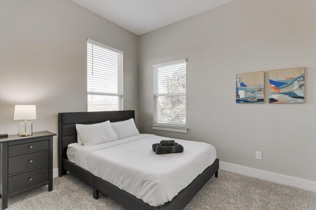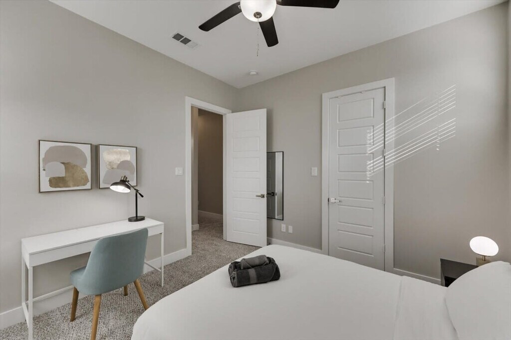 Feel at home in this luxurious 5-bedroom, 3-bathroom home ideally located just outside downtown Dallas. Newly renovated with high-end finishes and gorgeous interior design, this spacious home offers a private retreat between activities and sightseeing. With a fully equipped kitchen and essential amenities, you'll have everything you need for a comfortable stay. This home caters to both short-term and medium-term stays, making it an excellent choice for corporate housing needs. The modern and spacious interior features luxurious high-quality finishes throughout, with an open-concept layout that creates a bright and airy atmosphere. The main living room is perfect for relaxing with loved ones, while the second-floor loft offers a casual living area with cozy chairs and a foosball table. The spacious kitchen boasts custom-built white cabinetry, gray quartz countertops, and stainless-steel appliances, providing everything you need to prepare meals or enjoy local takeout. Five spacious bedrooms ensure a restful night's sleep, and the three spa-like bathrooms offer beautiful upgrades for a truly indulgent experience. Outdoor spaces include a cozy balcony with a swing egg chair and a large backyard with a covered patio and dining area. Pets are welcome with a non-refundable pet fee of $150 per pet, with a maximum of two pets per stay. Additional nightly rates apply for more than six guests, with a $29/night fee for each additional guest. Parking is available in the 2-car garage. Located in the Westmoreland Park neighborhood of West Dallas, this home offers the perfect balance of proximity to attractions and natural surroundings. Just 18 minutes from DFW airport and 15 minutes to downtown Dallas Main Street, you'll be a short drive from popular attractions like the Perot Museum of Nature and Science, Dallas Museum of Art, and the Dallas Zoo. Nature enthusiasts will appreciate the nearby parks, rivers, and lakes, including Mountain Creek Lake and Tramwell Crow Park, which offer walking trails and stunning views of the downtown Dallas skyline. Smoking is not allowed, with violations subject to a $450 fine plus cleaning and repair costs. Check-in is at 4 pm and check-out is at 10 am. Parties or large gatherings are not permitted, and only registered guests are allowed on the property. A noise alert device is installed to monitor decibel levels and ensure compliance with local noise ordinances. Room #5 is available for groups of 12 or more guests. Includes ergonomic chairs, high-speed Wi-Fi, and a spacious desk area for remote work-friendly accommodations. Registration Number: 573636 [SI]