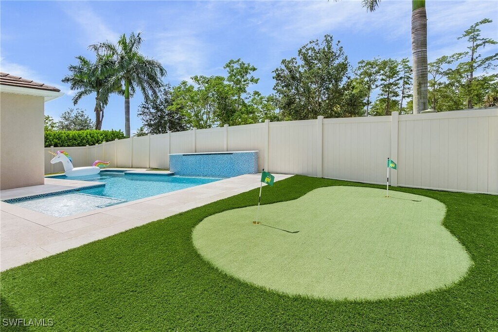 Discover your dream home at 3420 Pilot Circle,Naples,FL 34120! This stunning 2,402 sq. ft. single-family residence,completed in December 2020,offers modern elegance in the desirable Compass Landing gated community with top-rated schools and convenient HOA amenities,including a community pool,fitness center,and playground. Featuring 3 bedrooms,each with custom built-in closets for ample storage,a versatile den/office,2 full bathrooms,and 1 half bathroom,this home is perfect for families or professionals. The gourmet kitchen boasts stainless steel appliances,while the luxurious outdoor space includes a private saltwater pool with rainfall waterfall and sun shelf lighted bubbler,low-maintenance turf backyard,a fun putting green,a privacy vinyl fence,and a beautiful shell stone deck—perfect for relaxation or entertaining while enjoying breathtaking sunsets every night. The exterior is further enhanced with tasteful landscape lighting and a brick walkway with pathway lighting,creating an inviting ambiance. Enjoy added conveniences like a whole house water filtration system,water softener,overhead garage storage,and a backyard shed for extra items. The interior features overhead recessed lighting with dimmers in all bedrooms,the den/office,and the main living area,complemented by impact glass windows,stylish plantation shutters,fresh interior paint,and a newly finished epoxy garage floor. This move-in-ready home blends comfort,style,and functionality. Schedule a viewing today to experience this exceptional Naples rental!
