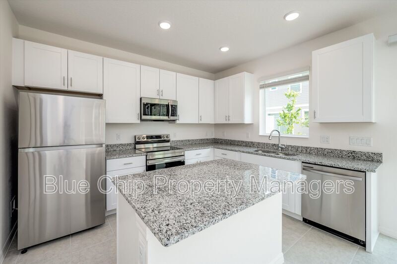 Welcome to your new home in the charming Wyndrush Creek community of Wesley Chapel! This newly constructed, energy-efficient townhome boasts a thoughtfully designed open floor plan that combines modern comfort with stylish living. With three generously sized bedrooms and two and a half bathrooms, this residence offers ample space for both relaxation and entertainment. The first floor is adorned with sleek tile flooring throughout, highlighting the elegant kitchen that features high-end stainless steel appliances and stunning granite countertops. The expansive kitchen seamlessly flows into a large patio, perfect for outdoor dining and enjoying the serene surroundings. Upstairs, you’ll discover all three bedrooms, including a master suite that provides a private retreat. Additionally, a versatile secondary living area at the top of the stairs offers a great space for a home office, play area, or cozy lounge. The community itself is enveloped by lush, mature trees, contributing to a peaceful and picturesque environment. Residents can take advantage of the well-maintained pool and cabana, ideal for relaxation and social gatherings. Conveniently situated, this home provides easy access to major expressways, as well as a variety of dining options, shopping centers, a movie theater, and entertainment venues. Embrace the comfort and convenience of this wonderful townhome. Welcome home! Additionally, all residents of Blue Chip Property Managers will benefit from the Resident Benefits Package (RBP) for just $50.00 per month. This comprehensive package includes liability insurance, credit-building services to help enhance your credit score through timely rent payments, identity theft protection up to $1 million, HVAC air filter delivery (for applicable properties), and a move-in concierge service that simplifies utility connections and home service setups. You’ll also have access to our premier resident rewards program, on-demand pest control, and much more. More details about these benefits will be provided upon application.