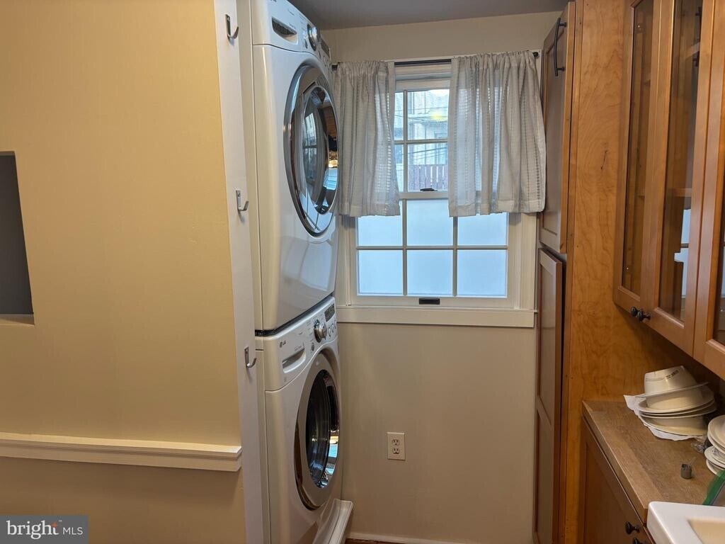Welcome home to this peaceful twin set on a quiet, tree-lined street in desirable East Falls. Just a few blocks from the train station and close to a charming small business district with shops and restaurants, this home offers both tranquility and convenience. Enjoy the soothing sound of water from a small pond surrounded by lovely terraced landscaping. Stone steps lead to the inviting front porch, where flower boxes create a perfect spot to relax. Inside, the living and dining rooms feature original hardwood floors with a beautiful marquetry border. An updated, open floor plan connects the kitchen to the living and dining areas—ideal for everyday living and entertaining. The kitchen offers cork flooring, a gas range, butcher block countertops, and a tile backsplash. Just off the kitchen, and separated by a pocket door, are a convenient powder room, pantry, and stackable washer and dryer. Hardwood floors continue up the stairs and throughout the hallway and all three bedrooms. The front-facing primary bedroom includes two closets, while the hall bathroom has been tastefully updated and features a skylight. The middle bedroom offers built-in shelving and storage, and a third bedroom completes the upper level. The basement provides ample shelving and storage space and includes an area previously carpeted and used as an additional room. From the basement hall, access the one-car garage and rear entrance, where a utility tub is conveniently located. Outside, a small garden area with berry bushes adds charm, and two off-street parking spaces provide secure parking.