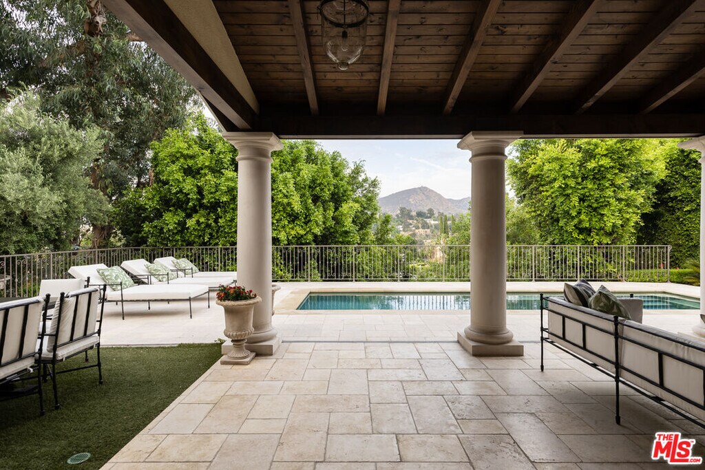 This exceptional Hollywood Hills villa, blending European charm with a contemporary allure, offers a rare, large lot allowing for a secure gated entry and motor court, lush succulent gardens, privacy hedges, an expansive loggia, pool, spa, bbq area, putting green, and fire-pit, all to be enjoyed while absorbing exciting views with front row seats to Universal's July 4th firework display. From the gated driveway, enter the courtyard to find welcoming French doors revealing the formal living area with stone flooring, high beamed ceilings, furniture quality built-ins and a gas burning fireplace ready to soar. A lovely bar area provides a seamless transition to the dining area, where another fireplace creates an intimate ambiance for memorable meals. The center-island kitchen offers gorgeous marble finishes, top-of-the-line stainless appliances and a cozy breakfast nook that bathes in natural light. On the main floor there is a powder room for the service of guests, two en-suite bedrooms, and a laundry room. Upstairs find two additional en-suite bedrooms, with the primary suite offering two closets, one being a large walk-in with cedar lining. The finished garage is equipped with a 240V wall outlet for charging electric cars. The location of this villa is just as enticing as the property itself, easy to reach and conveniently close to major studios, Studio City's renowned dining, shopping and bar scene, Hollywood's vibrant entertainment, and easy freeway and metro access to explore all that greater Los Angeles has to offer. MLS# 26658739