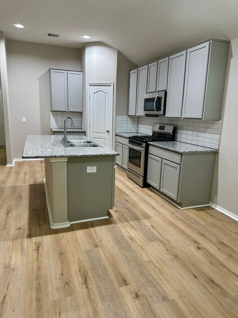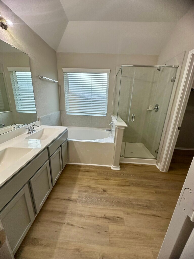 LIKE NEW,whole house brand new flooring and new paint!!! NO CARPET! in the heart of Richmond,McCrary Meadows subdivision! This gorgeous single-story home has four bedrooms plus a formal dining room. Fully upgraded primary bathroom with luxurious tiled shower,soaking tub; 42" extra storage kitchen cabinets,cotton white quartz countertops,modern stacked kitchen backsplash,stainless steel appliances,island kitchen with gooseneck pull-down faucet; an open family room,separate breakfast area,and a spacious yard with covered patio and gutters. NO BACK NEIGHBOR Community amenities include a recreation center,resort-style pool,splash pad,walking trails,sand volleyball court,tennis courts,and a beautiful playground. McCrary Meadows has easy access to major highways 99 Grand Parkway and is zoned to award-winning Lamar Consolidated ISD. Escape to nature and meadows with all the conveniences of five cities (Richmond,Rosenberg,Katy,Sugar Land,Fulshear). no dogs,Thanks! MLS# 59616120
