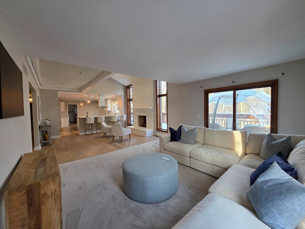 Available semi-furnished for a short-term lease now through the end of July 2026,this exceptional single-family residence is offered as one complete home,inclusive of both upper and lower levels. Designed for flexibility and comfort,the property features two fully equipped living areas,two primary suites upstairs in the main residence,and a combined total of 6 bedrooms,4 full baths,and 2 half bathrooms. The advertised rent includes the entire home,creating a rare opportunity for expansive,adaptable living in a serene,wooded setting with walkable & bikeable access to University of Michigan North Campus,as well as convenient proximity to parks,trails,and everyday amenities. Spanning approximately 5,700 finished square feet,the home has been thoughtfully refreshed with brand-new finishes & designed to support extended stays with ease. The layout allows the upper and lower levels to function independently,each with its own kitchens,living spaces,& laundry,while seamlessly connected as a single residence. The main living level is anchored by a bright,stunning,newly updated open-concept kitchen featuring a center island,breakfast nook,pantry,and high-quality appliances. It flows naturally into generous living and dining spaces filled with natural light and architectural warmth. Fireplaces are present but will not be operational during the lease. A formal dining room,wood-paneled office with French doors,and well-placed bar and serving areas add both function and architectural richness. Two perfectly situated powder rooms on the first floor allow for optimal convenience,especially while entertaining. The owner's primary suite on the upper level is a true retreat,offering expansive proportions with space for a sitting area,a spa-like bathroom with decadent soaking tub,sleek glass walled spa shower,double sinks,a large walk-in closet,extra large bifold closet,and a private balcony overlooking the treetops complete with a cuddler patio sofa to unwind day or night. A second generous primary suite provides additional flexibility with its own walk-in closet and beautifully finished en-suite bath. Two additional guest bedrooms complete this level,including one with an en-suite bathroom also accessible from the hallway. Each room is finished with plush newer carpeting for warmth and comfort. The fully finished walk-out lower level extends the living experience with two additional suites,one with an oversized walk-in closet (highly versatile extra space!),along with expansive recreation and lounge areas,a full kitchen,game room,second full laundry,and two screened door walls that glide to provide access to the patio and sauna (use subject to lease terms). Distinct architectural elements are woven throughout the home,including a netted air loft overlooking the main living space that offers a unique place to pause and reflect. Wellness amenities include a dedicated gym and yoga studio with equipment,created by converting one stall of the attached three-car garage,as well as a wooden luxury sauna available per lease terms. Outdoor living is a defining feature in this exquisite home. Expansive,tiered decks and patios overlook an exceptionally tranquil,tree-lined backdrop,creating an immersive sense of privacy and calm. Outdoor furnishings,and a custom glass dome on the upper patio accessible from the main floor living room complete the experience,offering inviting spaces for relaxation and gathering in every season. Additional features include main-level and lower-level laundry,central air conditioning,forced-air natural gas heating,a whole-house generator,generous storage,and an attached garage accommodating two vehicles,with a third stall converted as the dedicated fitness studio. Thoughtfully designed,beautifully finished,and quietly distinctive,this home offers a refined alternative to temporary housing,providing space,privacy,and continuity for you to experience a meaningful,enjoyable,relaxing,and very special season in Ann Arbor! All applications will be evaluated using consistent,objective criteria in accordance with Fair Housing laws. Information deemed reliable but not guaranteed. Prospective tenants to verify all information. Smoking is not permitted inside the residence. Additional photos coming soon!