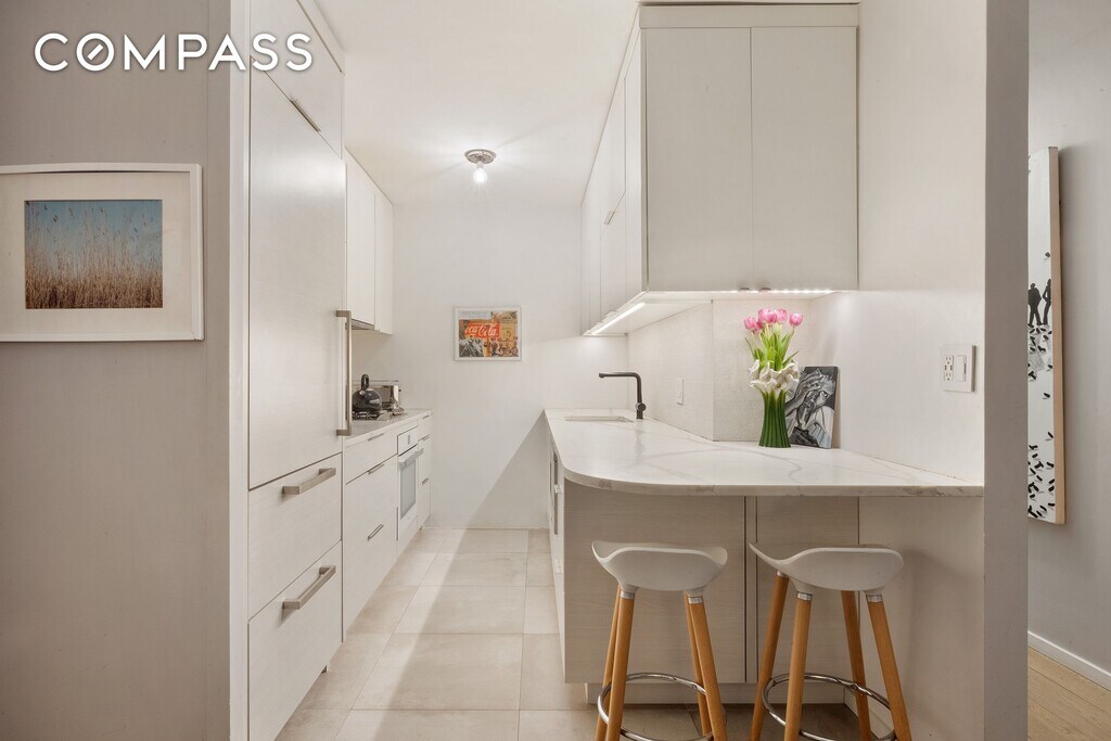 This sun-filled 2-bedroom, 2-bath residence offers a calm, settled feel the moment you step inside. A spacious living room is bathed in warm, natural sunlight, creating an inviting sense of openness throughout the day. A true dining area comfortably fits a table for six, providing a rare and practical setup for both everyday meals and entertaining. The well-designed galley kitchen is efficient and thoughtfully laid out, featuring a bar-stool seating area that connects naturally to the living space. Both bedrooms are true king-sized rooms with excellent proportions and separation. The apartment is completed by two full modern bathrooms with walk-in showers, offering comfort, privacy, and convenience. The home is located in an impeccably maintained full-service building with 24-hour doorman and concierge service, a fitness center, laundry facilities, and elevator access. Set in the heart of Kips Bay, with daily conveniences easily in reach — Target, Trader Joe’s, and AMC just steps away. A bright, well-scaled residence offering generous proportions, excellent light, and the ease of full-service living. Regarding pets, only service animals are allowed.