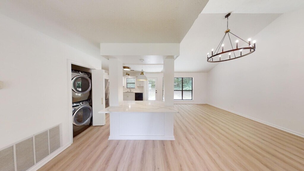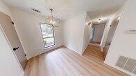 Fully renovated, one-story contemporary home located near Cary Woods. This property's renovations include: luxury vinyl plank floors throughout, interior and exterior paint, complete kitchen and bath remodel. Open kitchen and great room have an abundance of natural light with views of the wooded backyard. All bedrooms are spacious and updated with contemporary lighting. Bathrooms have clean lines and high end finishes. Check out our Virtual Walkthrough: