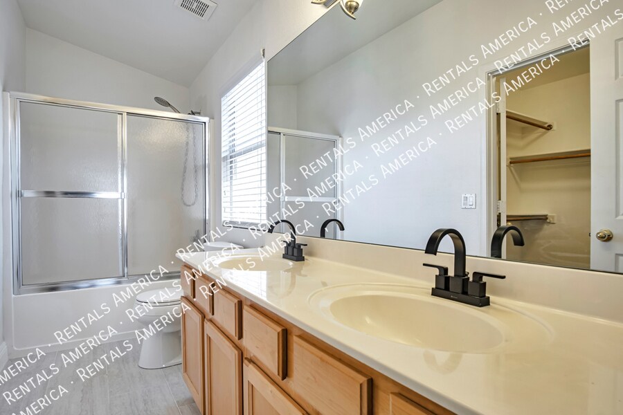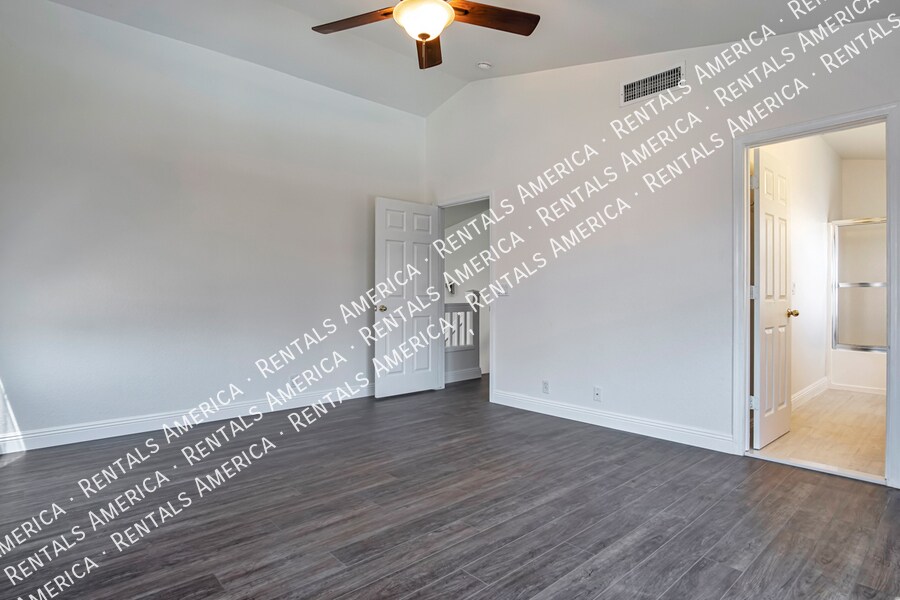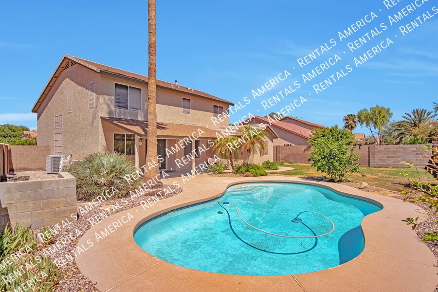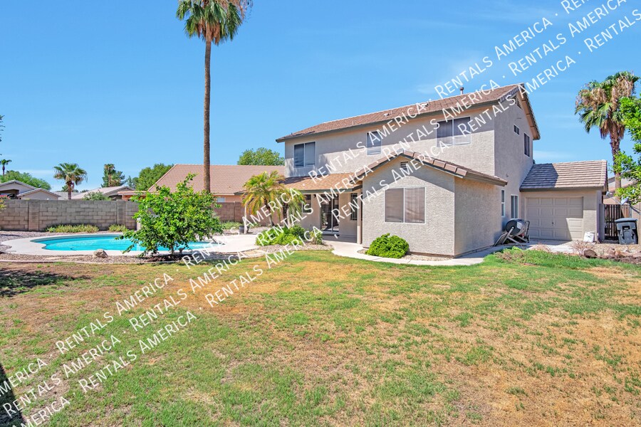 Get November's rent free with a signed 12 month lease! 5-bedroom, 3-bathroom home with no HOA for rent. Downstairs you will find 2 living room areas along the kitchen, 2 guest bedrooms and a full bathroom. Upstairs the primary room and bathroom and 2 other guest bedrooms and a bathroom and the laundry room. One of the garage spots opens up onto the street and the back yard too. Pool maintenance is included in the rent. One Time Admin Fee: $300, Pet Deposit: $300/pet (if applicable), Service Fee 2%. $39/month Resident Benefits Package, Helping Heroes Discount Available! Cats Allowed Ceramic Tile Disposal Dogs Allowed Dryer Garage Hardwood Pets Allowed Vaulted Ceilings Washer