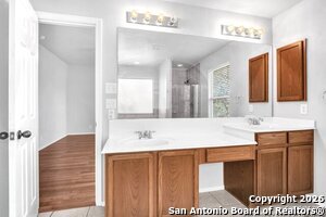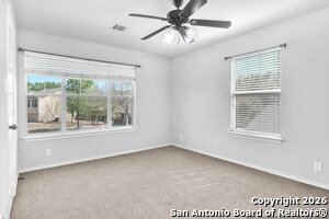 This charming 3bed, 2.5bath home offers privacy, comfort, and modern upgrades. Enjoy an open concept living area filled with natural light, a rebuilt backyard deck overlooking the greenbelt, and a spacious upstairs media area. The primary suite features dual vanities, a soaking tub, and a walk-in closet. Recent updates include new HVAC systems for added peace of mind. Conveniently located near Lackland AFB, SeaWorld, shopping, dining, and more-this home delivers unbeatable value and lifestyle. Is in an HOA community.