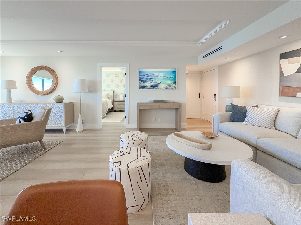 Welcome to your private oasis,where sweeping bay views fill the main living spaces with natural beauty. This elegantly furnished residence features two spacious primary en-suite bedrooms,an open-concept living and dining area,and smart home technology for effortless comfort. The recently renovated Madrid Club offers exceptional amenities,including a stylish lobby,state-of-the-art fitness center,library,sparkling bayside pool,and outdoor kitchen with BBQ area—perfect for entertaining. Enjoy convenient kayak storage and a private launch dock,along with under-building parking and electric vehicle charging stations. Ideally located just across the street from the sandy beach and the tranquil Gulf waters,and a short stroll to Venetian Village for world-class dining and boutique shopping. Savor serene sunrises and watch the bay sparkle—your Naples dream lifestyle awaits.
