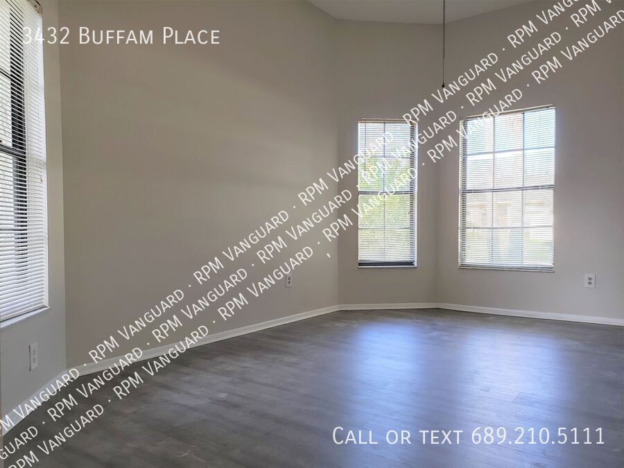 Welcome to 3432 Buffam Place. This amazing home is located on a quiet street in a great neighborhood and has just been freshly painted throughout. The single-story home comes unfurnished and features a spacious family room with ceramic tile flooring and vaulted ceiling, as well as separate formal living and dining rooms that have been upgraded with brand new luxury vinyl plank flooring. The kitchen is located right off the dining room and has beautiful hardwood flooring, plenty of cabinet space for storage and additional space for a small breakfast dining table. From the kitchen, there is access to two outside patios from two separate sliding glass doors. The master bedroom features vaulted ceilings with a ceiling fan, outdoor access to the yard via another sliding glass door and a large private en-suite bathroom complete with double vanities, walk-in shower, garden-style soaking tub and 2 walk-in closets. There are 2 additional bedrooms, both with ceiling fans, and another full bathroom to complete the home’s interior layout, all with ceramic tiled floors. A full-sized washer and dryer are included in the home and there is a 2-car attached garage, as well as a private, fenced-in backyard. The home is located approximately 15 miles northeast of downtown Orlando with easy access to SR-436 (Semoran Blvd) and SR-417 (Central Florida Greenway). There are dozens of nearby restaurants, stores and shops to choose from, including Oviedo Mall which is less than 4 miles away. The new resident will be responsible for utilities, lawn maintenance and pest control. The resident is also required to maintain renter’s liability insurance throughout the lease term. Pets are allowed (no aggressive breeds) with one-time pet fee and additional monthly pet rent depending on the type and size of the pet. All RPM Vanguard residents are automatically enrolled in the Resident Benefits Package (RBP) for $30/month which includes: HVAC Air Filter Delivery, Credit Building (to help boost your credit score with timely rent payments), $1M Identity Theft Protection, Utility Connections Concierge Service, Resident Rewards Program, Online Tenant Portal, 24/7 Emergency Maintenance Service, and much more! More details available. WARNING: AVOID SCAMS!!! This property is being offered through Real Property Management Vanguard ONLY! And it is ONLY being offered for the rental amount as listed in this advertisement. All prospective tenants MUST go through RPM Vanguard's application process in order to be approved to rent this property. All move-in payments must be made directly to Real Property Management Vanguard ONLY. Do not give any money for this property to anyone other than RPM Vanguard.