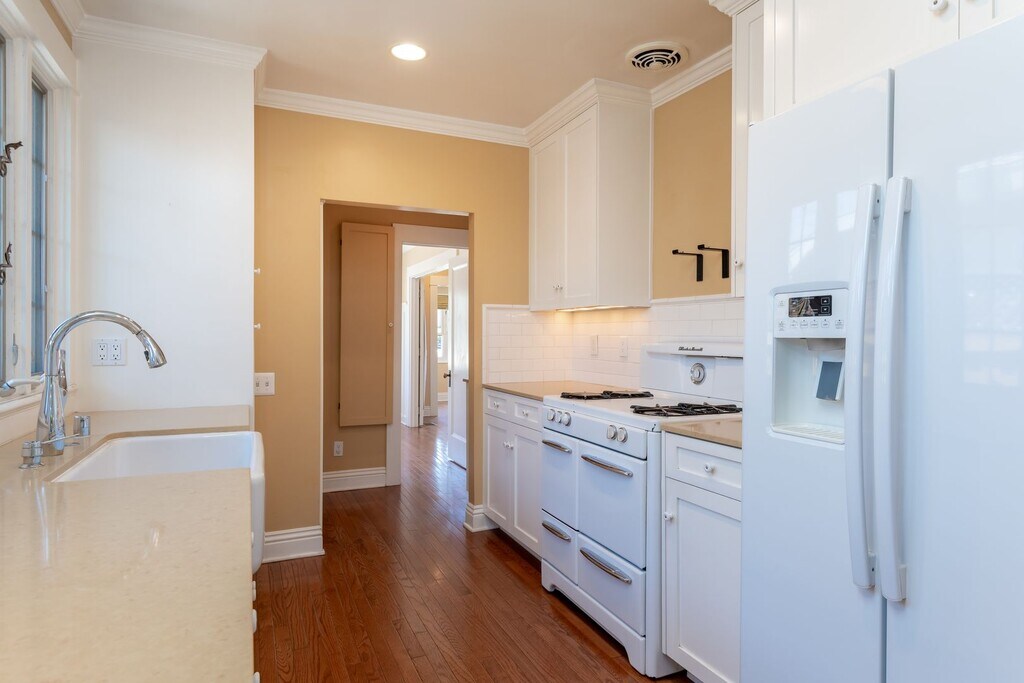 Classy and cozy 1922 bungalow home in desirable North Park area. This single story home is a dream home from the expanded entryway and living room to the private and expansive covered patio and deck on back and side of the home! The front yard features artificial turf with beautiful drought resistant landscaping. The fencing around the front yard has a gate which slides open to offer off-street parking on the strong stamped-cement foundation. There is beautiful wood flooring throughout the home with updated dual-paned windows and custom coverings. The home is well lit with recessed lighting and beautiful custom designed ceilings. Second bedroom can be used as bedroom, dining room, or office and has double French doors which open onto the living room. The galley kitchen features a large farm sink, large double door refrigerator, 4 burner gas stove, subway tile backsplash, quartz countertops, double dishwashers, and a unique step-up nook with built-in table and benches for casual eating, computer work, reading, or anything where a peaceful place to spend time is desired. The bathroom features a large corner tiled shower and classic claw-foot white bathtub. The master bedroom is spacious and has Victorian-inspired crown molding as well as do all rooms throughout the home. Other amenities include A/C, a tank-less water heater, stackable washer and dryer, a large storage shed in the backyard, an enclosure for trash cans, and off street parking. This property is one to call home immediately upon viewing as it emits warmth, elegant class, and comfort! Tenants pay for gas, electricity, water, sewer, Wi-Fi, cable, and phone. Pets are negotiable and require owner approval. Owner prefers one year lease and requires tenant to have renter’s insurance. Available immediately. To arrange a viewing please email or text Steve at: or Please be sure you include your first/last name, cell phone number and the property address you wish to view. Apply at , click on "View Our Properties" and follow the prompt to apply. All applicants over 18 years of age to complete tenant application plus $40 per person processing fee. Landlord is seeking credit scores of 650 + and gross monthly income equal to 2.5-3 X the rent. The owner requires tenant to maintain renter's insurance for their personal belongings and liability. Chase Pacific is the only agent contracted to represent this property. CA DRE #00576911 This information is deemed reliable but not guaranteed. It is the duty (responsibility) of the tenant or tenant’s agent/representative to confirm the information herein.
