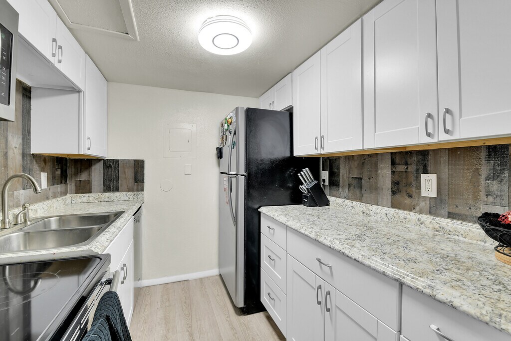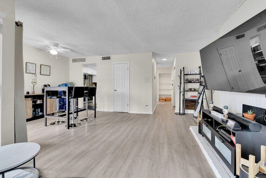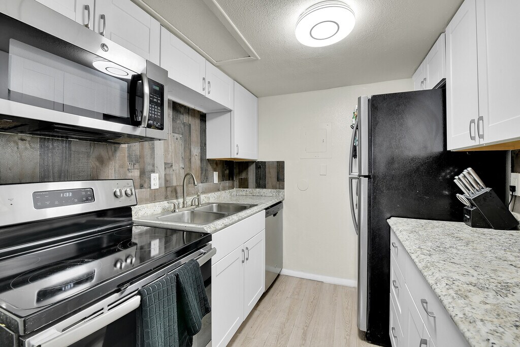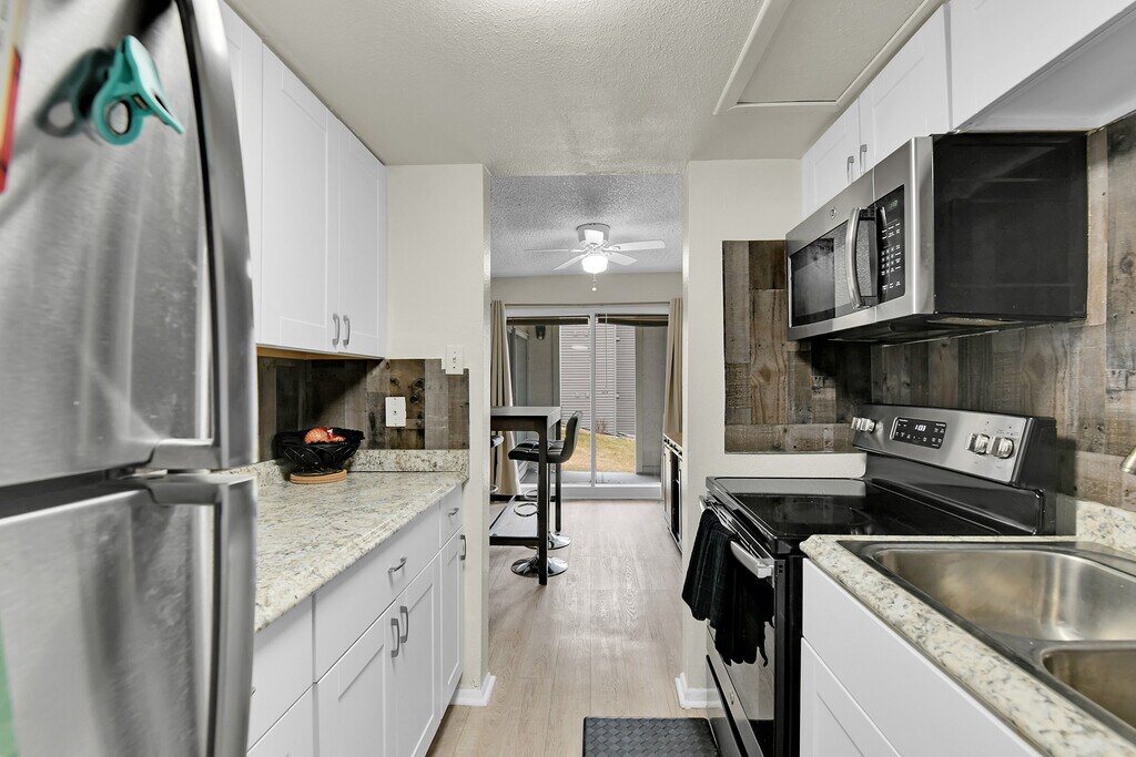 Welcome to this inviting condominium located in the Monaco Place Condos community, nestled in Denver, Colorado. This well-appointed 2-bedroom, 2-bathroom unit spans 1,029 square feet, providing ample space for comfortable living. The property features a contemporary design with a focus on functionality and style, making it a perfect choice for urban dwellers seeking a blend of convenience and comfort. Upon entering, you will be greeted by a spacious living room adorned with light wood-style LVP flooring and a textured ceiling, enhancing the airy ambiance. The living area is complemented by a cozy masonry fireplace, perfect for those chilly Colorado evenings. The kitchen boasts modern stainless steel appliances and white cabinetry, providing an efficient cooking space for culinary enthusiasts. The dining area seamlessly integrates with the living room, creating an ideal setting for entertaining guests or family meals. This condominium offers a range of community amenities, including covered parking and a suburban setting, providing a peaceful retreat while remaining close to urban conveniences. Enjoy nearby shopping, and dining options, all within easy reach. Trash and water include in rent. Pets welcome with associated fee. Denver rental license #2025-ENTITY-0009577.