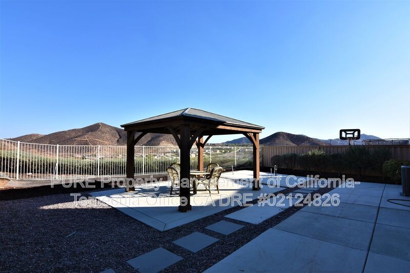 Gorgeous Home with Scenic Hillside Views and Solar Power in Lake Elsinore! NEW PICTURES COMING ON 11/3 Located on the peaceful outskirts of the Lake Elsinore hills, this beautiful home offers a perfect blend of privacy, space, and style. Tucked away at the end of a quiet cul-de-sac with no rear neighbors, you’ll enjoy stunning hillside views and a serene living experience. As you step inside, a welcoming hallway leads into the first family room — ideal for a sitting area or formal living space. Continue into the grand open-concept room, featuring a spacious second living area, cozy dual-sided fireplace, and a bright kitchen with granite countertops, abundant cabinet storage, and an island perfect for entertaining. The upstairs landing offers a generous multi-use space, perfect for a game room, office, or lounge. The three guest bedrooms are comfortably sized and share a full bathroom with dual sinks. The primary suite features ample natural light and a large ensuite bathroom with a deep soaking tub, walk-in shower, and dual vanities. Step outside to your own private backyard retreat, complete with a large gazebo and panoramic views of Mason Mountain — ideal for relaxing evenings or weekend gatherings. Additional highlights include: Two-car garage with built-in shelving and storage Energy-efficient solar system available for a low monthly fee of $100 Cul-de-sac location with scenic surroundings This home truly combines comfort, privacy, and California beauty — don’t miss your chance to make it yours! Listing and marketing information provided is deemed reliable and accurate but not guaranteed - agent, broker, and resident should confirm all property information and specifications before entering a rental agreement. Visit our website to review our rental criteria prior to submitting an application. A $54 non-refundable application fee per adult will be charged. Every person over 18 who would reside at the property must complete and submit a rental application. We are a fair housing provider. All applicants will be subject to the same application criteria. For REDUCED move-in costs, talk to us about our Security Deposit Replacement Program! This property comes equipped with Gig-Speed Internet at $65.00/month! Enjoy the benefits of the Resident Benefits Package (RBP), tailored to your needs. Choose from our tiered pricing options, starting at just $25.99*/month. Your RBP may include: ? Liability insurance ? HVAC air filter delivery (for applicable properties) ? On-demand pest control ? And more! Contact us today to learn more about the RBP tiers and find the perfect fit for you. *We do not accept applications from any 3rd party service including Zillow. Please apply on our website directly. PURE Property Management of California DRE #02124826 Amenities: loft, dishwasher, microwave, mountain views, granite countertops, lvp flooring, gazebo, in unit laundry, landscaping services included, cul-de-sac, dual fireplace, soft close cabinets, easy maintenance backyard