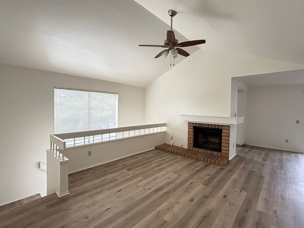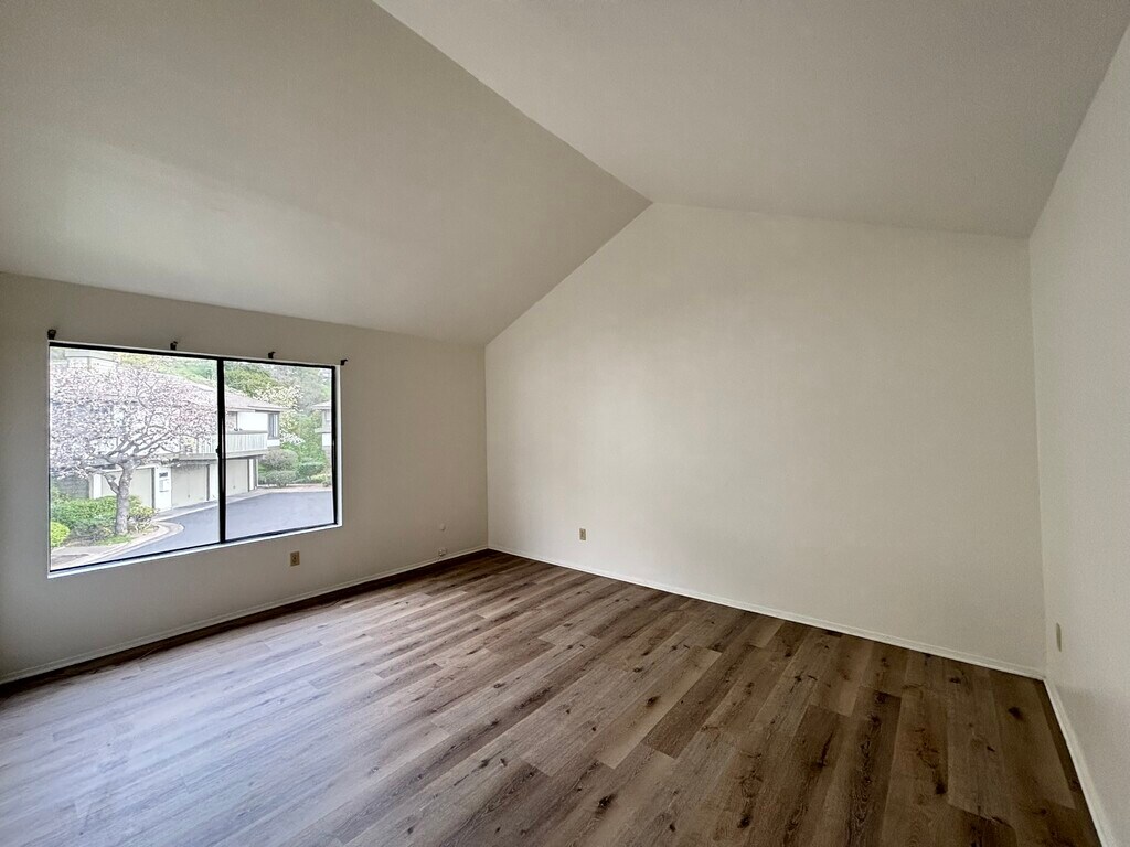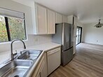 This is it! A beautiful, bright 2 bedroom, 2 bath townhouse with a garage! Great location, end unit with new vinyl plank floors and new paint. The living room has a huge window and vaulted ceilings plus, a fireplace. The nice kitchen has newer stainless steel appliances and pleny of counterspace and cupboards. It has windows that over look the mature trees. There are sliders from the dining room to a large deck, perfect for a bistro table to enjoy your morning coffee. The primary bedroom has vaulted celings and is large enough to fit a king sized bed plus extra furniture. There are 2 closets for all your items and a big bathroom with a sunlight for natural light. The hall bathroom also has a skylight. There is a direct access garage with washer and dryer hookups. The complex has a pool and jacuzzi for for relaxing!