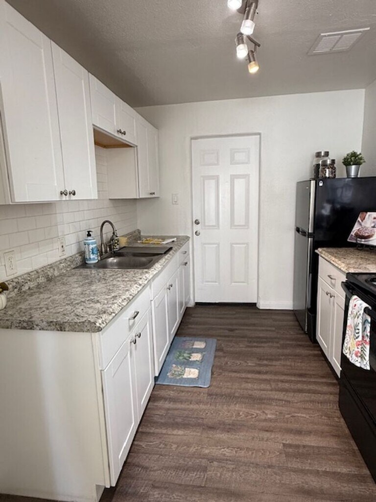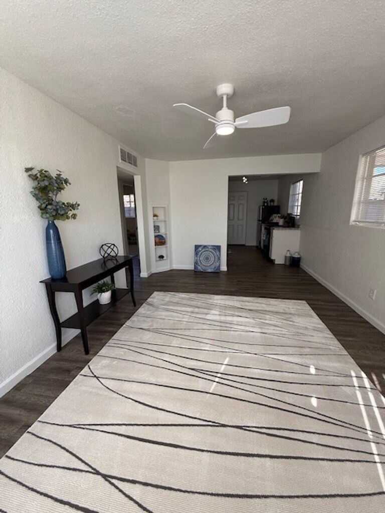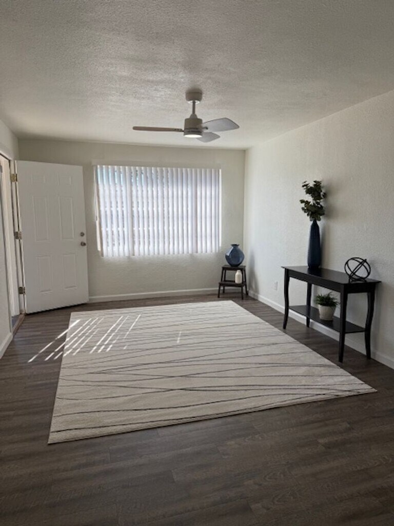 2 Bed 1 Bath Renovated End Unit with a nice size yard and Attached covered parking. New Appliances-Refrigerator, F/S Range. New floors, new paint throughout, new ceiling fans, fixtures, lights, kitchen-counters and cabinets, bathroom-vanity, tub and surround.