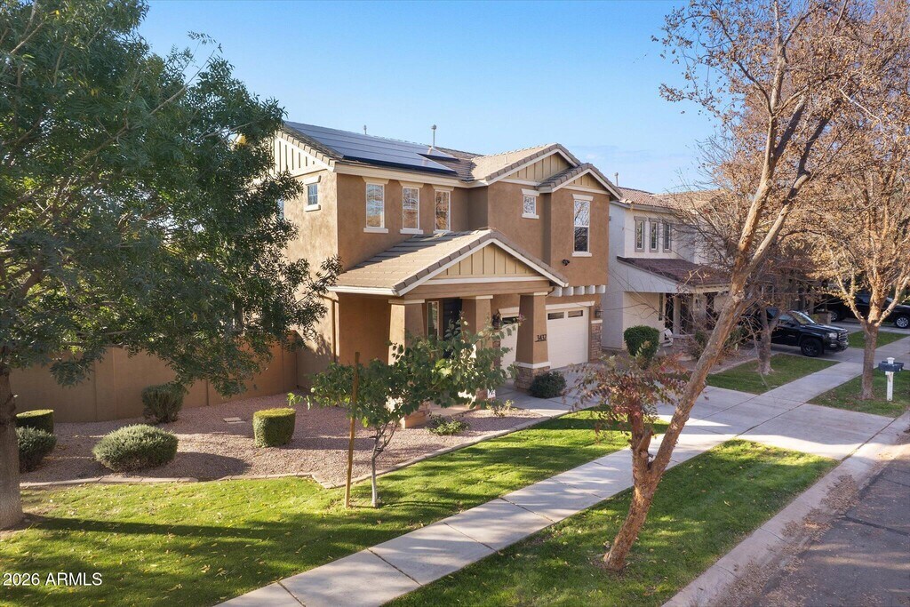 Gorgeous fully furnished 3 bedroom,2 1/2 bath,2 story home in the heart of Gilbert. Upscale living in a lush,master community in Morrison Ranch. Tree lined streets with grass front yards and greenbelts with two man made lakes with fountains. This lovely home has Luxury vinyl plank flooring throughout which mimics hardwood flooring. Vaulted ceiling in the Living Room that elevates the space. The beautifully designed kitchen with a kitchen island features ample cabinets,newer stainless steel appliances,confection oven,soft-close cabinets,and an reverse osmosis system for drinking water. An entire house water filter and water softener system that is easier on your laundry,hair,skin and cleaning. Eat in kitchen. Front loader washing machine and a mini washing machine for the small mini washing machine for a smaller load. Entertainment and comfort are top tier! The home theater in the Living Room features a backlit 83'' 4K LG TV,and surround sound. The Primary bedroom has a massive 85" Samsung 4K TB for your viewing pleasure. The Primary Suite impresses with stunning views of the greenbelt and the well known Morrison Ranch 4 grain silos. Blackout blinds together with the Casper memory foam mattress allow for a great nights sleep. The Primary bathroom has a glass enclosure with a floor to ceiling onyx wall. Enjoy the showier experience with water coming from all directions,from five different spray heads,including a rain shower head. Or,you may choose to relax in the full length bathtub next to the picture window. One of the secondary bedrooms has a 70" Vizio Smart TV. Each TV has an Amazon Fire Stick 4K Max attached,so you can log into your favorite streaming services anytime you like. Internet is included (but not cable.) This is a fully integrated smart home,with Alex a controlled lighting,blinds,video doorbell,and even a kettle. It features modern conveniences like an AI optimized washer and dryer,an EV charger,a whole house backup battery,so if the electrical grid goes down,you don't. The roof is covered with solar panels so do on and turn down the AC as cold as you would like be to the Arizona summer heat. Enjoy the outdoor space with a spacious backyard and side yard with fruit trees,a patio dining set and a charming front patio seating area--perfect for relaxing or visiting. The two community man made lakes are used as reservoirs for the community irrigating system. You can go fishing in the reservoir lakes which are a catch and release system. This home is located 15 minutes from downtown Gilbert where the street is lined with restaurants and entertainment. Shopping at the San Tan Village is just 10 minutes down the road. Less than 5 minutes is a grocery story,bank,and a couple other spots for a quick bite to eat. This rental price includes utilities (water,sewer,trash and electricity.) Internet,HOA fee,and landscaping. You only need to bring your clothes and a toothbrush.