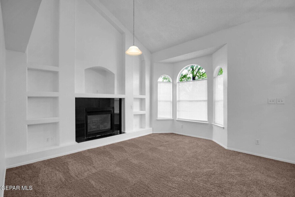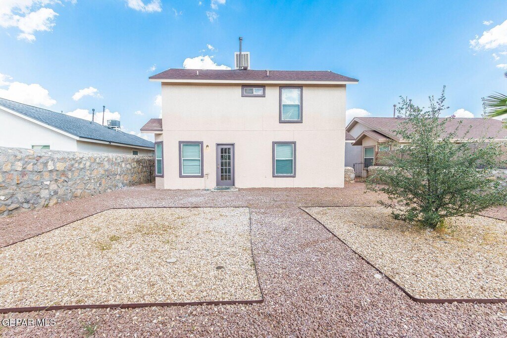 Step into comfort and style with this charming 3-bedroom,2-bathroom home in East El Paso! Featuring refrigerated A/C and window blinds throughout,this home ensures year-round comfort. The spacious kitchen offers a center island and a cozy breakfast area,perfect for daily dining. The inviting living room comes complete with a fireplace and a built-in media wall,providing a great space for relaxing and entertaining. Upstairs,you'll find three carpeted bedrooms,including a master suite,all filled with plenty of natural lighting. Tile flooring adds a sleek touch to the main living areas,while washer/dryer hookups offer everyday convenience. The landscaped front and back yards provide a lovely outdoor escape,and the double car garage offers ample storage and parking.With easy access to Loop 375,this home offers the perfect combination of convenience and modern living in East El Paso. Don't miss out on this opportunity!