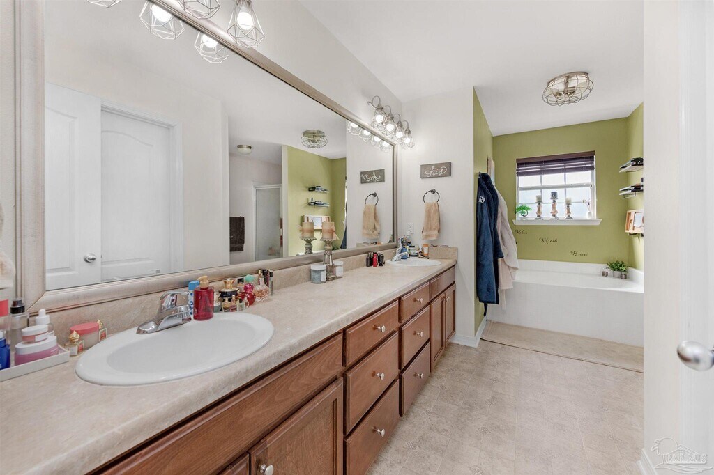 Welcome home to this spacious and beautifully designed 5 bedroom,3 bathroom residence in Pensacola! Offering over 2,500 square feet of living space,this home provides the perfect blend of comfort,functionality,and style. Step inside to find gorgeous hardwood flooring throughout the main living areas on the first floor,complemented by a stylish tiled kitchen that is both functional and inviting for everyday living and entertaining. The second floor features cozy carpeting throughout the bedrooms,creating a warm and comfortable retreat. The primary suite is a true oasis,complete with a luxurious garden tub,a separate standing shower,and plenty of space to unwind after a long day. With five generously sized bedrooms and three full bathrooms,there is room for everyone to spread out and enjoy. This home is equipped with a water softener system and an HVAC air purification system,helping provide enhanced water quality and improved indoor air for added comfort. Outside,you’ll love the fully fenced backyard—perfect for relaxing,entertaining,or enjoying some extra privacy. This home also includes a washer and dryer for your convenience (non-warranted).