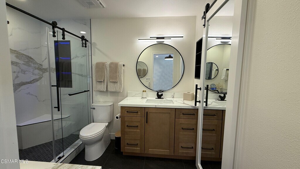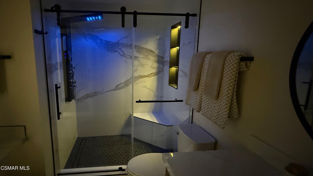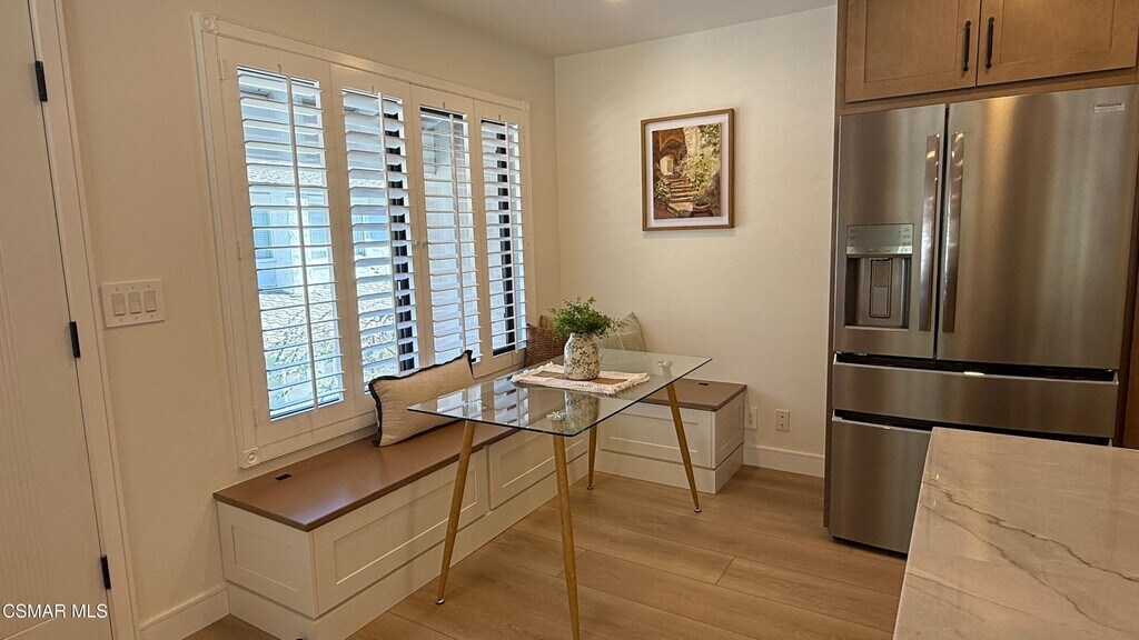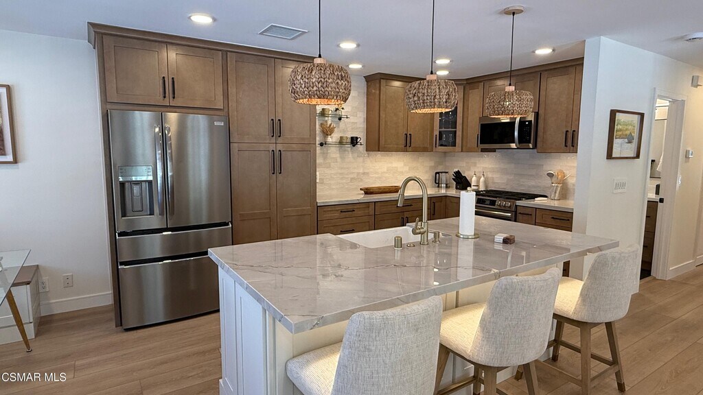 Welcome to this fully furnished 2-bedroom, 2-bathroom condo, spanning approximately 1050 Sq.Ft., nestled in the heart of Simi Valley. It's ready for its first-time tenant and comes equipped with everything you need for luxurious living--all brand new!The condo boasts high-end, wide-plank luxury vinyl flooring throughout, complemented by large area rugs. Extra-large plantation shutters flood the space with natural light. The main living area features a custom-built entertainment center with a 70'' smart TV. An electric fireplace adds warmth and ambiance. Each ceiling light throughout the condo offers a ''halo mode'' for an instant, romantic, nighttime setting. A sound bar and subwoofer enhance the entertainment experience. A reclining couch and a cozy sitting area provide comfort in this incredible open-concept space.The primary bedroom is spacious and features a queen-size bed and a 65'' wall-mounted smart TV. End tables with built-in power outlets and USB ports make charging your smart devices a breeze. The bedroom also boasts a large en-suite bathroom with a stunning shower, a sit-down makeup area, and a sliding barn door with a full-length wardrobe mirror that opens to a spacious walk-in closet. The closet is equipped with built-in lighted shelves, glass doors, and wicker baskets for that added touch!The second bedroom is designed as an office, providing a separate space for work or virtual meetings. It also includes a 40'' wall-mounted smart TV and a queen-size pull-out couch for overnight guests. Double sliding closet mirror doors open to a well-organized closet system with drawers and shelves.Both bathrooms are elegantly appointed with imported Italian slate tile flooring, beautiful porcelain shower walls, and modern shower towers with rainfall and body jet modes. LED shower niches add a touch of mood and are adjustable to any color. In-ceiling Bluetooth speakers provide music while getting ready. The kitchen is equipped with brand-new appliances, including a refrigerator, dishwasher, oven, and microwave. It also features table settings for eight people, wine glasses, coffee mugs, glasses, utensils, pots, pans, mixers, and a spacious pull-out pantry. All cabinets and drawers are equipped with a soft-close feature, and the large farmhouse sink includes a garbage disposal.The condo also boasts its own ''in-unit'' smart washer and dryer. Each room is equipped with CAT 6 Ethernet hook-ups, providing high-speed internet and high-speed Wi-Fi throughout the entire living area. Additionally, there's a two-car garage with ample storage shelves. Every detail in this condo has been meticulously thought out, ensuring a luxurious living experience. So, come and enjoy some exceptional living in this truly one-of-a-kind condo.