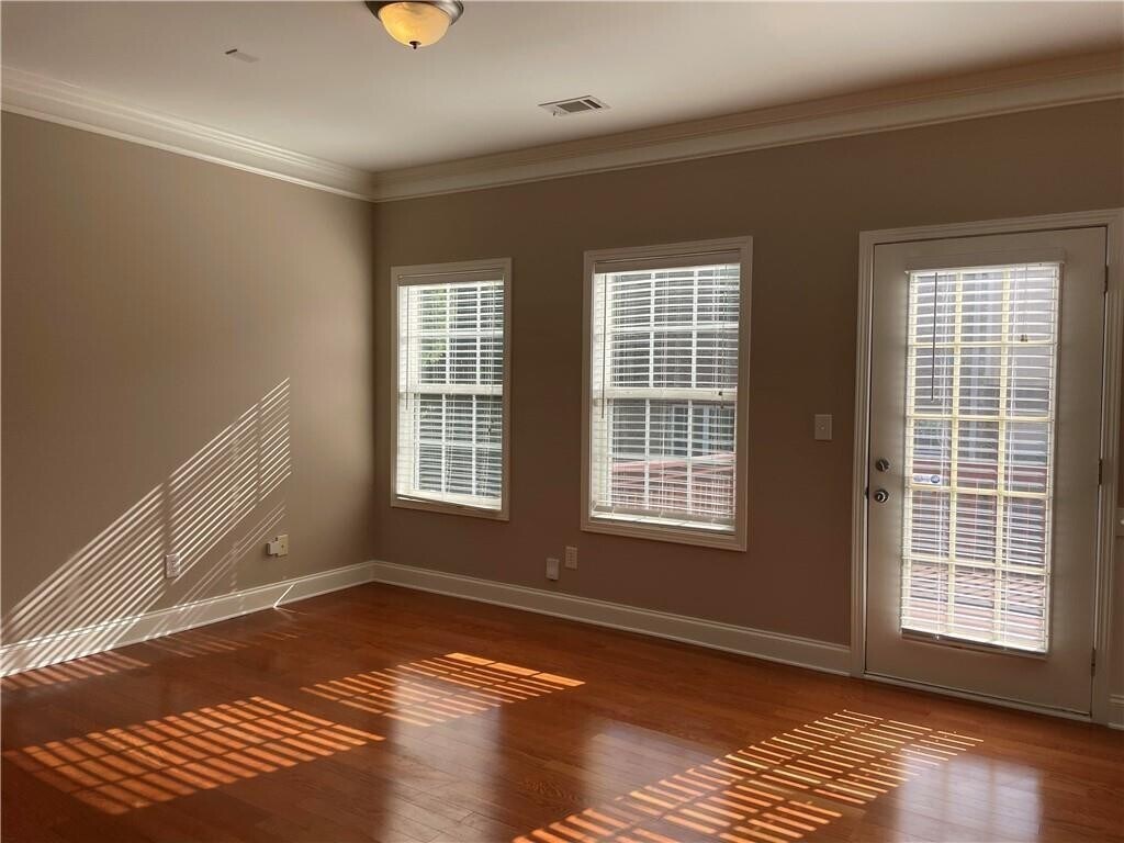 This stunning three-sided brick,end-unit townhome in the heart of Peachtree Corners is a must-see! The home features a private terrace-level bedroom with a full bath. The main level offers beautiful hardwood floors throughout,with separate living and dining areas filled with abundant natural light—perfect for both everyday living and entertaining. The upper level showcases a spacious primary suite with a large walk-in closet,double vanities,and a separate shower and soaking tub. Two additional bedrooms,a full bathroom,and an upstairs laundry room provide an ideal roommate or family-friendly floor plan. Additional highlights include a two-car garage and a gated community setting. Enjoy an unbeatable location within walking distance to The Forum and Town Center’s dining,shopping,and grocery options,with easy access to I-85 and I-285. Don’t miss this rare opportunity—this home is truly a gem!