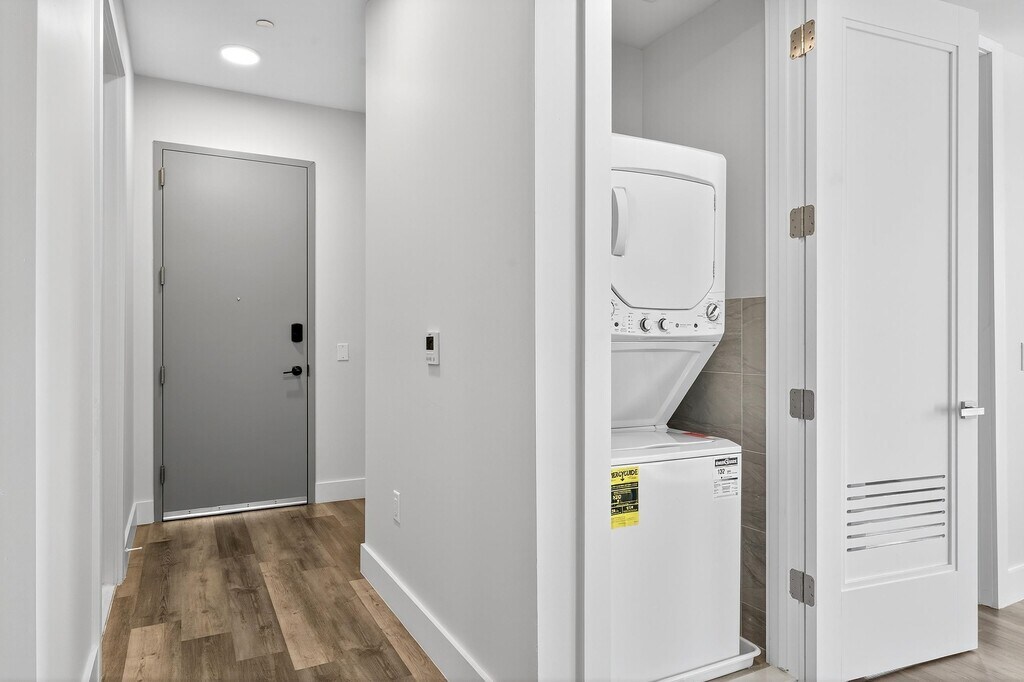 Step into the vibrant life of Hudson Heights with this stunning modern two-bedroom, one-bath apartment that perfectly balances style and convenience. Nestled in a pet-friendly, recently built community, this residence invites you to enjoy top-tier amenities without the extra cost—imagine three scenic rooftop decks, a secure entrance with an elevator, and perks like fitness center. The spacious layout boasts breathtaking views and a sleek interior featuring sleek floors, and a kitchen equipped with white quartz countertops, a chic tile backsplash, and smart fridge. With an in-unit washer and dryer, your day-to-day is made effortlessly smooth. Located just steps away from Leonard Gordon Park, bustling shops, eateries, and quick access to NYC via PATH and local bus stops, this apartment offers the perfect blend of tranquility and city pulse. Parking is available for those who need it, making this an ideal urban sanctuary ready to welcome you home.