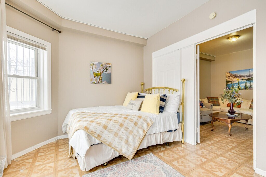 Feel at home in this 1-bedroom, 1-bath vacation rental in Chicago, ideally located on the 1st floor with 3 interior steps to enter. This apartment features a smart TV and a patio with a plastic garden chair. The kitchen is equipped with a refrigerator, stove/oven, drip coffee maker, air fryer, slow cooker, toaster oven, and blender, along with cooking basics, dishware, flatware, trash bags, and paper towels. There is also a dining table. Linens, towels, conditioner, body wash, a washer, a dryer, and hangers are provided. Enjoy free Wi-Fi and central heating, as well as a portable A/C unit. This apartment is pet-friendly for dogs only, with a $200 fee (plus fees and taxes, 1 max). Explore Chicago staples like Millennium Park, the Art Institute of Chicago, and the Riverwalk, all easily accessed from the bus stop less than 2 blocks away. Quiet hours are observed from 8:00 PM to 8:00 AM. There are 4 exterior security cameras facing out. The homeowner lives on-site in a separate unit. Guests must be at least 18 years old to book. A photo ID may be required upon check-in. [SI]