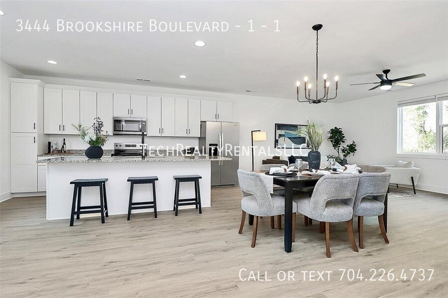 * We don't advertise on craigslist! * Stunning Newly Constructed Townhome in Prime Charlotte Location – 3444 Brookshire Boulevard Welcome to this gorgeous 3-bedroom, 3.5-bathroom townhome with 1,806 sq. ft. of modern living space, offering both style and functionality. Built in 2026, this brand-new construction is perfect for those seeking contemporary amenities, spacious rooms, and a convenient location in the heart of Charlotte, North Carolina. Key Features: 3 Spacious Bedrooms: Enjoy ample space and natural light with well-appointed rooms, perfect for relaxation and privacy. 3.5 Bathrooms: Featuring sleek, modern finishes with ample storage and luxurious touches. Open-Concept Living: Expansive, light-filled living areas seamlessly blend with the kitchen and dining space, ideal for entertaining or everyday living. Modern Kitchen: Equipped with stainless steel appliances, sleek countertops, and ample storage, this kitchen is a chef's dream. High-End Finishes: From the premium flooring to the energy-efficient windows, every detail has been thoughtfully designed. All applicants 18+ must pass credit and background checks, provide proof of funds, and pay a non-refundable application fee. Minimum 1-year lease required; no subleasing. The application fee is $25 for application processing and $35 paid directly to TransUnion for credit and background reports. By submitting your information , you consent to being contacted by the Property Manager and TechrealtyRentals via SMS, phone, or email.