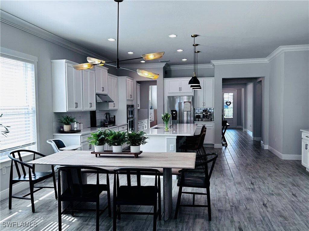 Welcome to this beautifully appointed home located in the highly sought-after Compass Landing community,right in the heart of North Naples. Just minutes from Founders Square,you’ll enjoy convenient access to a vibrant selection of restaurants,cafés,fitness centers,and everyday essentials. This home is zoned for top-rated “A” schools,making it an excellent choice for families or anyone seeking a premier Naples location. The property features several high-end upgrades,including a built-in outdoor grill perfect for entertaining,whole-house reverse osmosis water filtration,and a Google smart security system for added peace of mind. Thoughtfully designed for comfort and convenience,this residence offers a perfect blend of modern living and prime location. Enjoy the North Naples lifestyle with everything you need just moments from your door.
