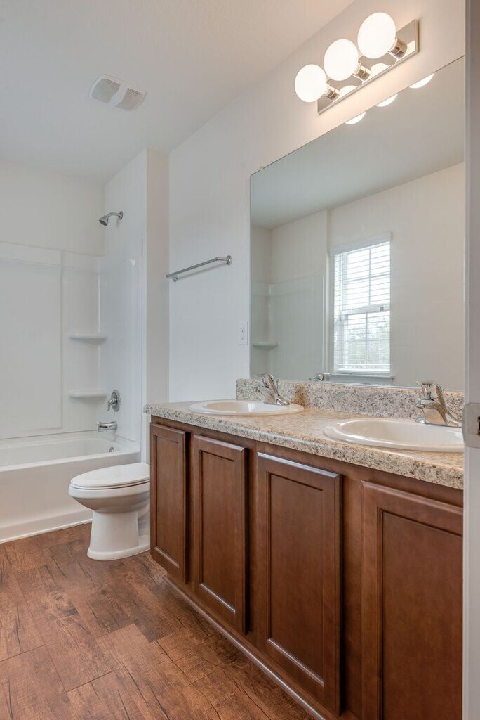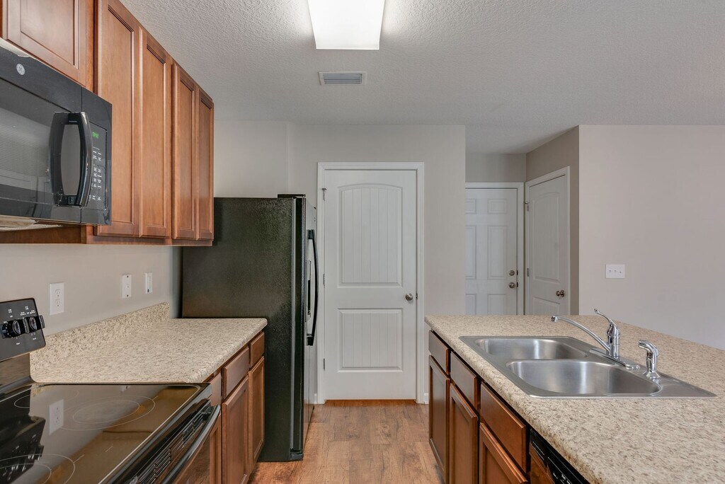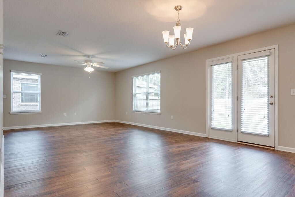 Take advantage of this stunning 4-bedroom, 2.5-bathroom home located in the desirable Wynfield neighborhood in Pace, just off Woodbine Road. Inside, the open-concept floor plan features a spacious Great Room filled with natural light and French doors leading to the backyard. The kitchen offers plenty of counter and cabinet space, with a large center island and breakfast bar. Appliances include a side-by-side refrigerator, smooth-top range, built-in microwave, and dishwasher. The primary suite overlooks the backyard and features a private ensuite bathroom with dual vanities, a walk-in shower, and a large walk-in closet. Upstairs, three additional bedrooms share a full bath with double sinks and a tub/shower combo. Additionally, the upstairs laundry room includes a full-size washer and dryer. Outside, enjoy the large, fully-fenced backyard, offering plenty of room for relaxation or play. Additional highlights include LVP flooring throughout the main living areas and plush carpet in all bedrooms, a cozy covered front porch, and a 2 car garage for added convenience.