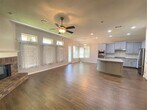BEAUTIFUL 3 bed 2 bath house has fronts and sides to green space so it is very private. No neighbors to the right or across the street. There is a large granite island in the kitchen and wood look tile flooring. The open floor plan includes a family room with a fireplace, separate dining and breakfast areas (the dining area has a coffered ceiling).