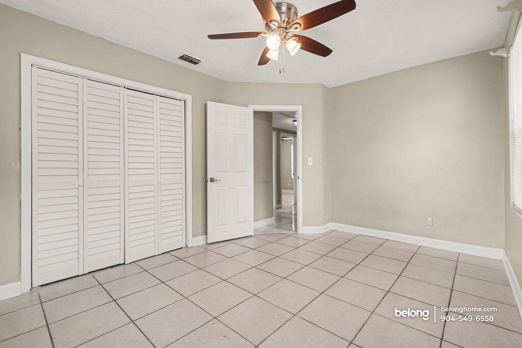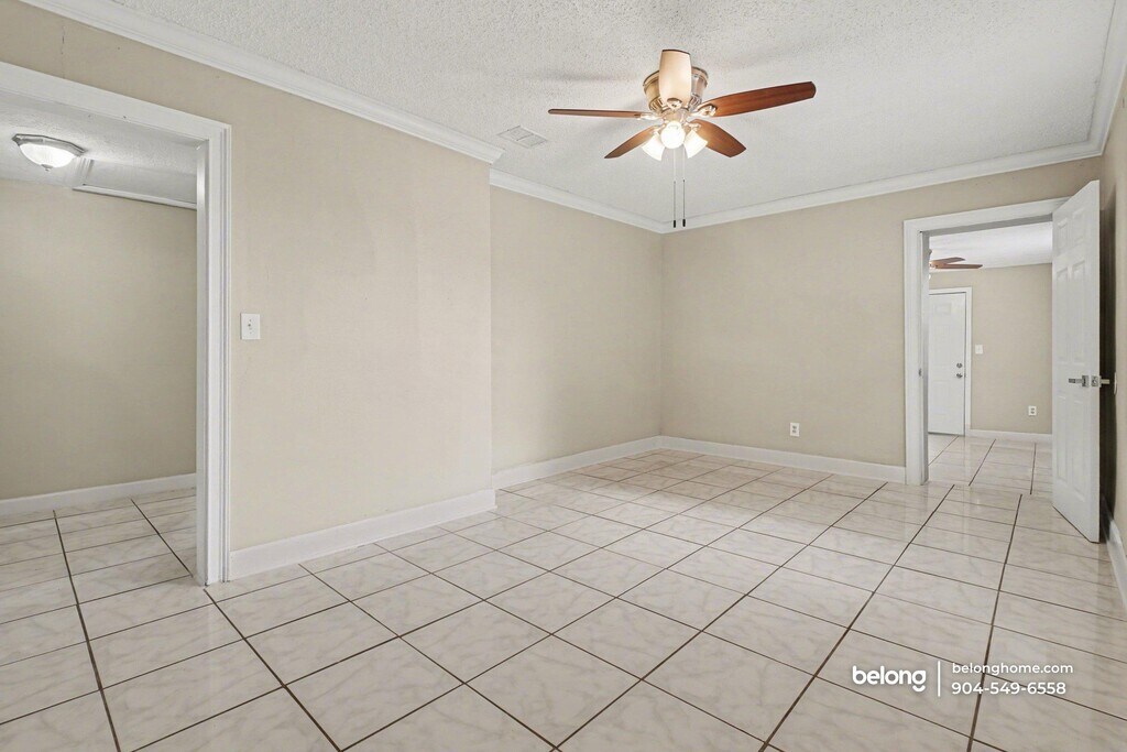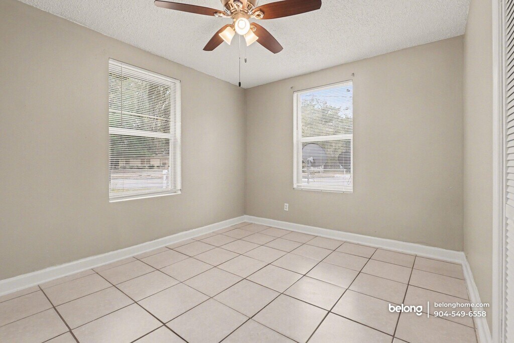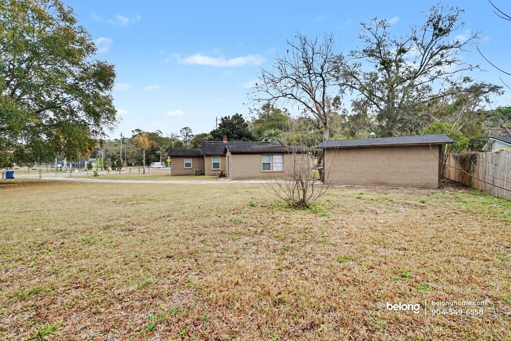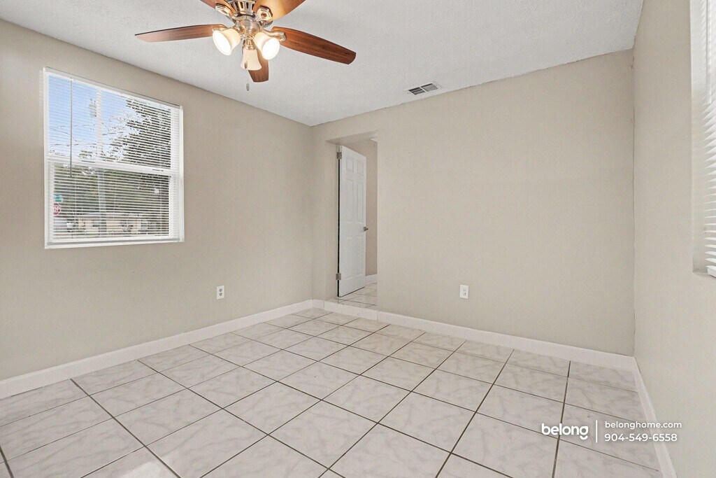 Clean lines, durable tile flooring, and ceiling fans define the shared living spaces of this 3-bedroom, 1-bath home, creating a practical layout that supports everyday routines. Natural light enters through multiple windows, and neutral finishes keep the interior adaptable for a range of furnishing styles. The living area offers generous floor space for seating or a dining setup, supported by tile flooring that continues into the kitchen. Cabinetry provides ample storage, and spacious counters allow room for meal prep and daily use. Appliances are arranged for straightforward functionality, helping keep this space easy to navigate and maintain. Outdoors, a dedicated storage shed in the yard adds useful space for tools, equipment, or seasonal items. This home sits directly across the street from a community park that regularly hosts neighborhood and youth events, offering a strong sense of connection right outside your door. Notably, it has long been regarded as a safe haven, with no history of break-ins reported. Full tennis courts are available at the park for recreation and exercise. Daily conveniences are close by along Soutel Drive and Moncrief Road, with grocery stores, local dining spots, and shopping centers nearby, while downtown Jacksonville remains a manageable drive away. *Our homes come as-is with all essentials in working order. Want upgrades? Request it through the Belong app, and our trusted pros will take care of the rest!