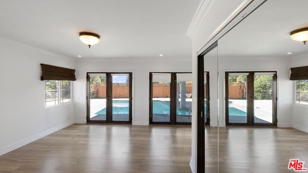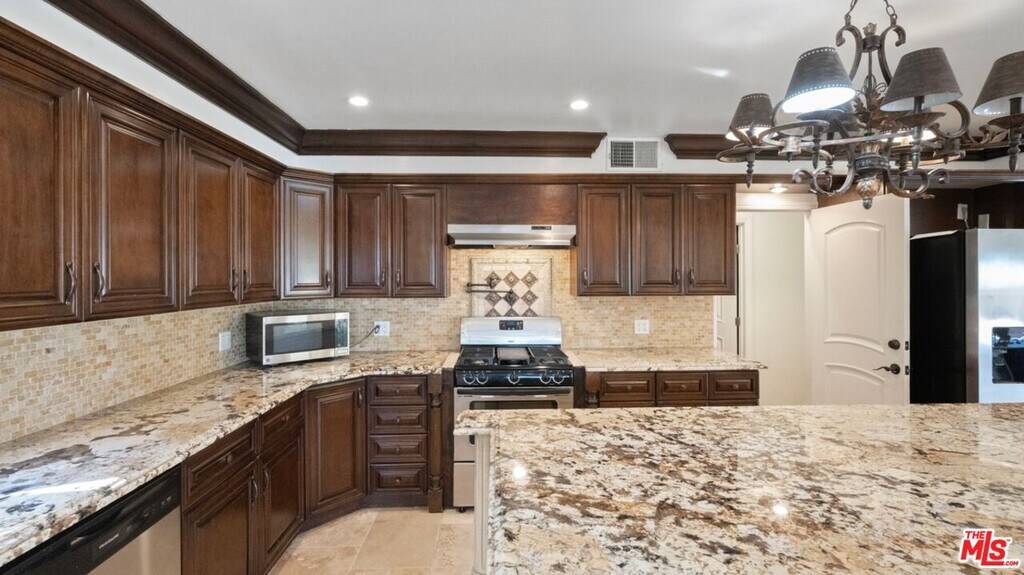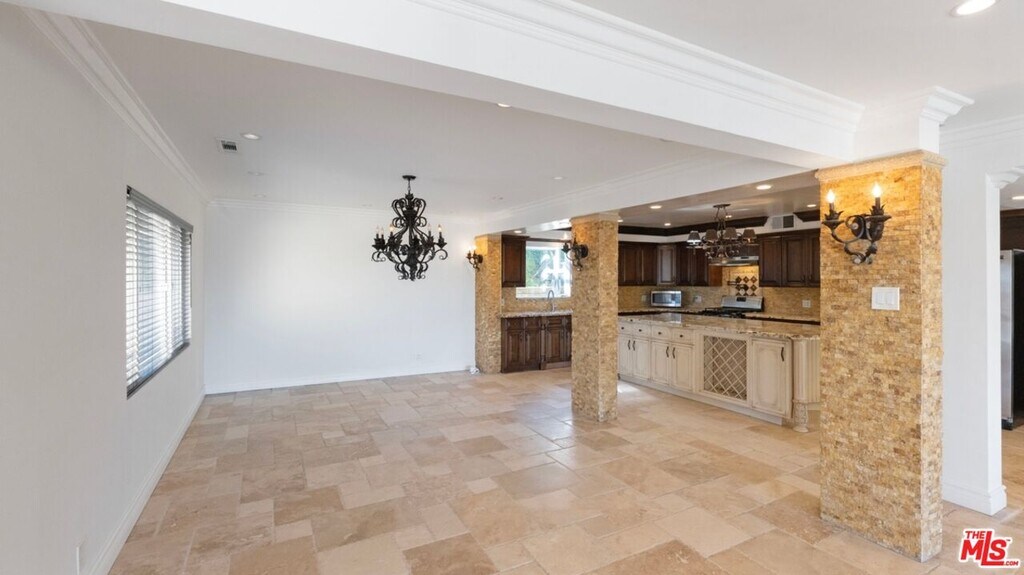 This beautifully refreshed Encino Hills view home offers 3,400 square feet of elegant two-story living with 4 bedrooms and 3 full bathrooms in a quiet, peaceful hillside neighborhood. The home features a formal living room with a large fireplace and an open indoor-outdoor feel that is perfect for entertaining, along with a formal dining area and generous storage throughout. The kitchen is designed for both style and function and includes stainless steel appliances such as a refrigerator, stove and oven, microwave, and dishwasher, along with stone countertops, a large center island, and a walk-in pantry. Upstairs, the spacious primary suite offers a walk-in closet and beautiful views of the surrounding hills, while the additional bedrooms provide flexible space for family, guests, or a home office. The private backyard is a true retreat, complete with an in-ground swimming pool, built-in BBQ and entertaining area, lush landscaping, and sweeping hillside views. Additional features include central air and heat, a two-car garage, fresh interior paint, and pet-friendly accommodations. Pool and gardening service are included and paid by the owner, making this an exceptional opportunity to enjoy resort-style living in one of Encino's most desirable neighborhoods. MLS# 26637967