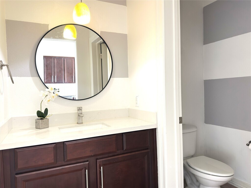 Step into this updated beautiful home in a gated community with 3 beds/3.5 baths. Enjoy a bright open floor plan with luxury vinyl flooring through out . Quartz countertops and SS Appliances adorn the kitchen with ample cabinet space. Relax on the big balcony overlooking the green belt. The primary bedroom boasts a spa-like bathroom with a Freestanding Soaking Bathtub and double sink. A fenced backyard,washer/dryer,and refrigerator included. Community amenities include lots of guest parking,a dog park,and proximity to Texas Medical Center,NRG stadium,and major highways. Landlord covers water and trash. MLS# 10261713
