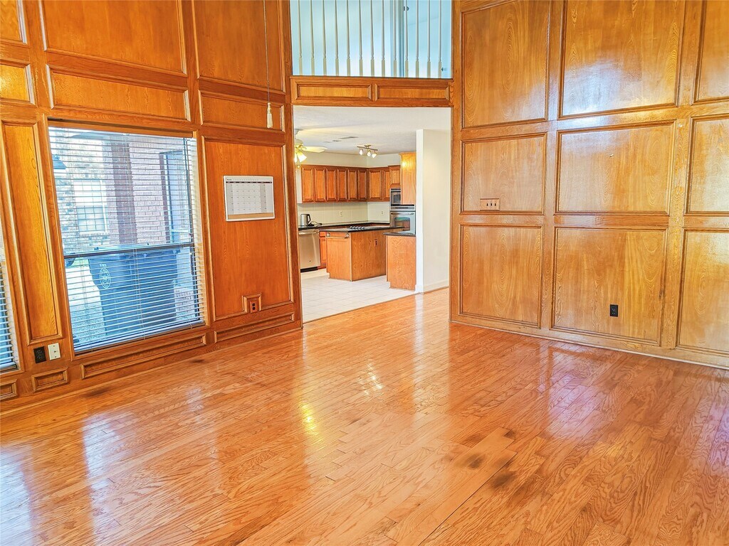 A gorgeous house with 3 bdrm,2.5 bath,2 detached garage on corner lot. It featured with high ceiling for both living room and family room,wood floor throughout house except all wet areas,namely kitchen,dining,laundry and bathrooms,which featured tile floor. The high ceiling living room living room is with large windows to front view. Formal dining is next to Kitchen. Kitchen countertops are all granite,island with cooktop and vent. Built-in microwave and oven. Eat-in breakfast room. High ceiling featured family room includes cozy fireplace,all around top-to-bottom wood walls and plenty windows with backyard view. Master bedrm has walk-in closet and sliding doors to backyard. Master bath is with double sinks,granite counter-tops,separate shower and bath. Game room. 2 bedrms and secondary full bath are upstairs. Established neighborhood with highly acclaimed Fort Bend schools,especially Clements High School. A few mins away from HWY 59,6,90,restaurants and shopping malls. MLS# 74055305