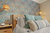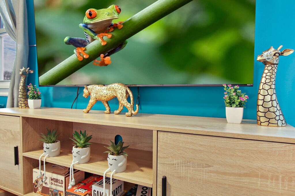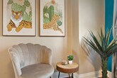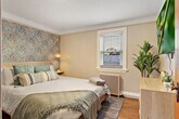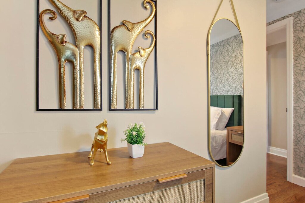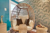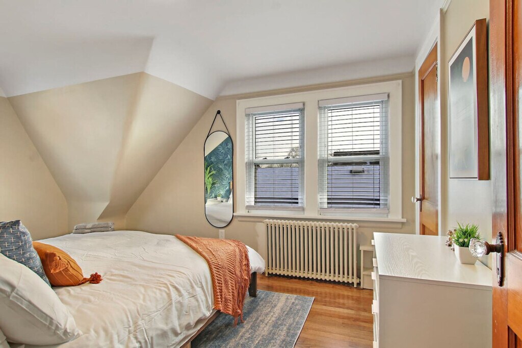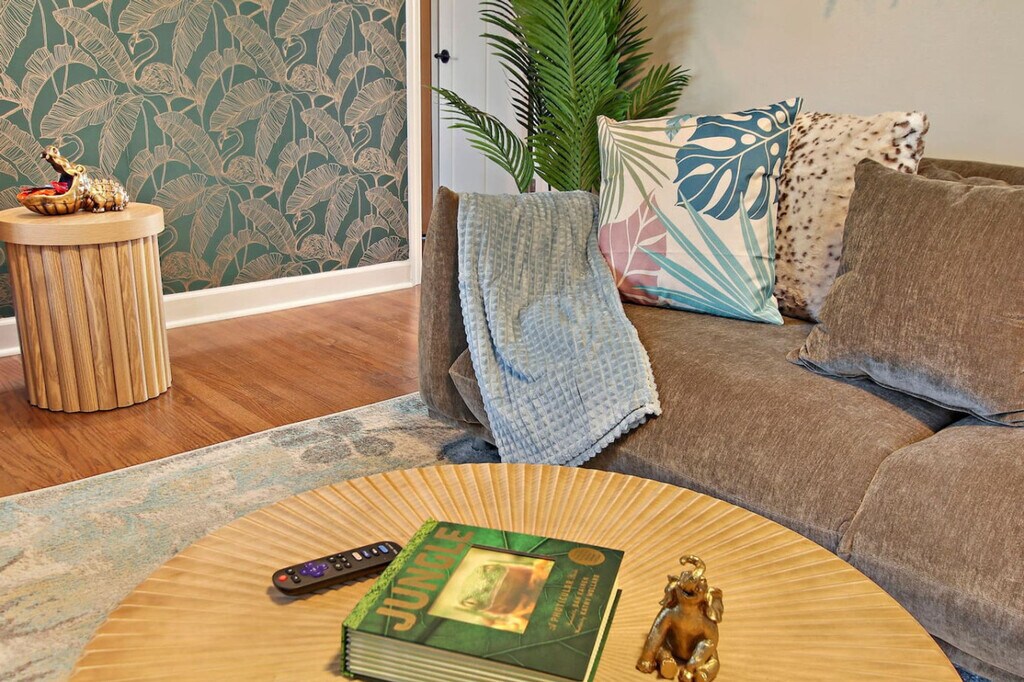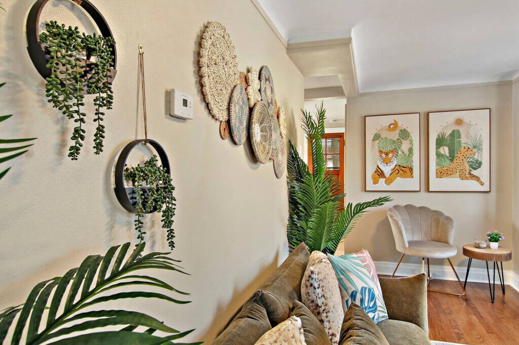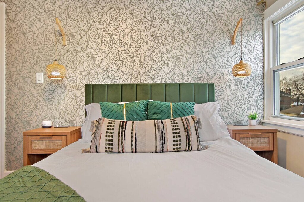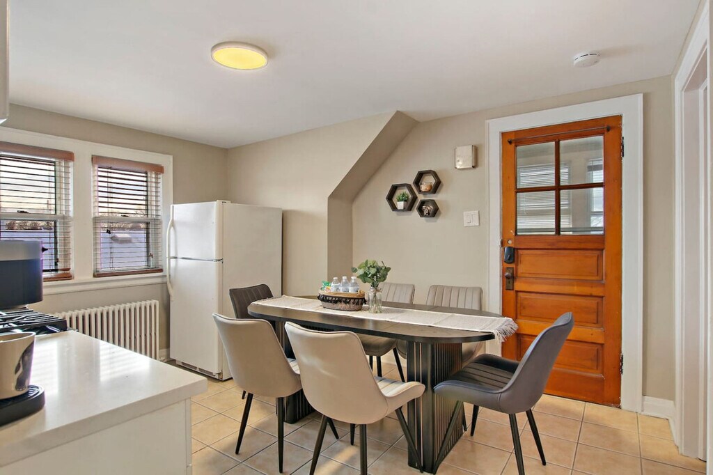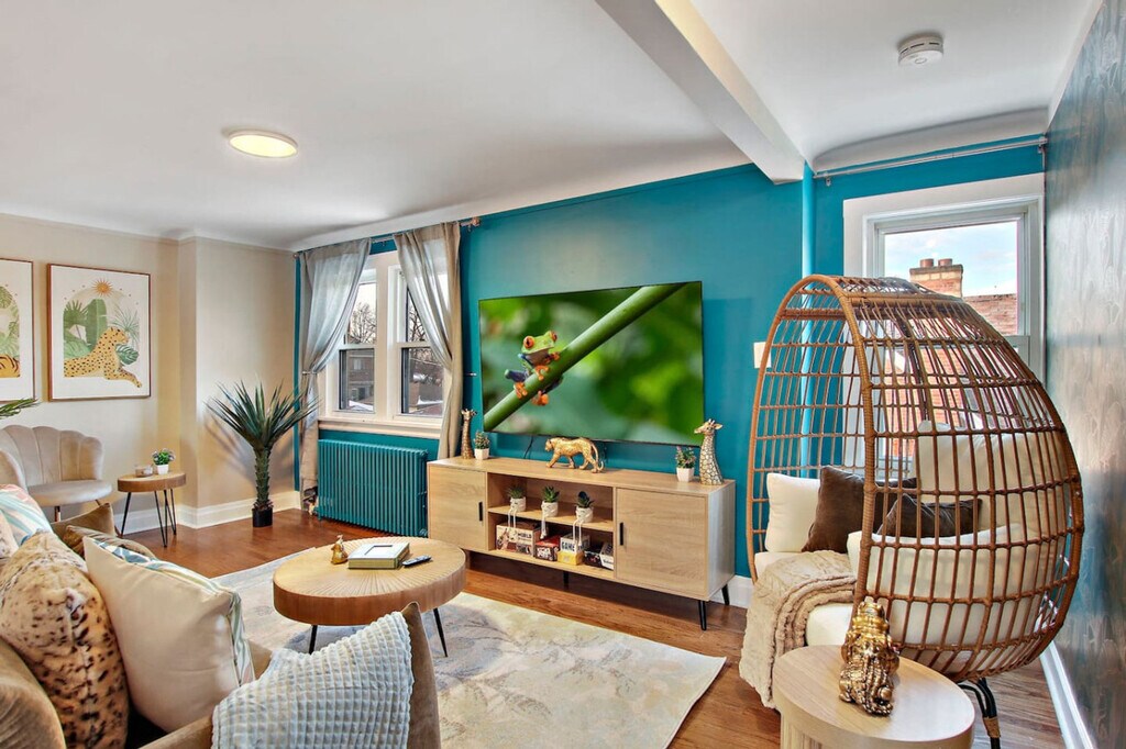 Feel at home in this 3-bedroom tropical retreat, bringing a slice of the jungle to the city. Enjoy the privacy of a separate entrance to this second-floor duplex. Note that this apartment is located on the upper floor of an older duplex, so you may occasionally hear the neighbor downstairs if you’re sensitive to noise. This unique, jungle-themed apartment is thoughtfully stocked with items and amenities to cater to business travelers, couples, and families. The stylish living room is equipped with a 65-inch Smart TV, board games, a comfortable couch and a spacious egg chair. The fully stocked kitchen has all the necessary cookware and spices, plus a dedicated dining area for 6. Notable amenities include in-building laundry and a fully stocked bathroom. Enjoy garage parking and free street parking. Situated in Elmwood Park, between downtown Chicago and the upscale Chicago suburbs, this apartment is in an ideal location for a weekend getaway, business trip, or family vacation. It offers easy access to numerous restaurants, grocery stores, and parks. The Harlem Irving Mall is 5 minutes away, and O'Hare Airport is 10 minutes away. The train station is a 5-minute drive, providing easy access to downtown Chicago. Strictly no parties, loud noises, or any kind of smoking are allowed, and violators will be strictly fined. Includes a dedicated workspace with high-speed Wi-Fi. [SI]
