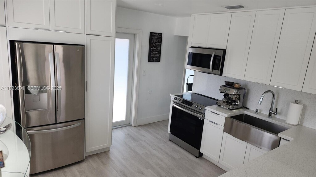 Splendid Central Miami 2bed/1bath front unit of Duplex has been remodeled and is minutes walking distance to Coral Gables Miracle Mile, Miracle Center shopping & dinning amenities, LA Fitness and more. This fine home features updated white kitchen cabinets with SS appliances & quartz counter tops, Impact windows/doors, updated bathroom and in house laundry room. Side patio area ok for BBQs. Parking for up to 4 autos. Come home to 3447 SW 23 St and live well.