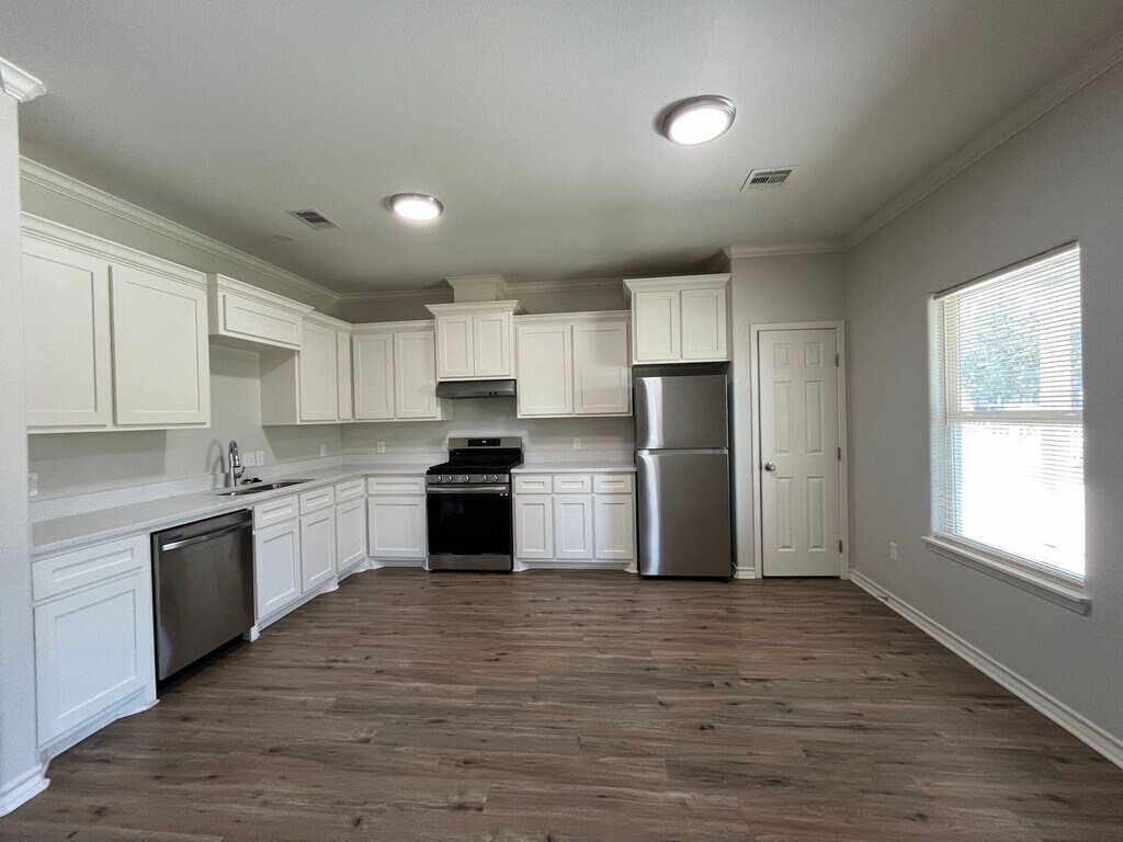 Recent build three bedroom two bath home with ample one car garage in established P.A. Cliffs Subdivision. Faux wood laminate floors, granite countertops, and ceiling fans throughout. Open your front door to a spacious living room with a coffered ceiling that leads you into kitchen and casual dining area. Kitchen features all stainless steel appliances including a gas range, lots of countertop and cabinet space, plus a separate pantry for extra storage. Two bedrooms on the left side of the house share a bathroom with a tiled stand up shower. Primary bedroom tucked away on the right back side of the home boasts a walk in closet with built in cubbies, tub shower combination, and overlooks the fenced in backyard. Patio and laundry/garage access can be found steps from the primary bedroom. Located a couple of blocks from Ocean Drive and Driscoll Children's Hospital with a quick commute to grocery, restaurants, parks, entertainment, shopping, and so much more! Call a realtor today to schedule a showing.