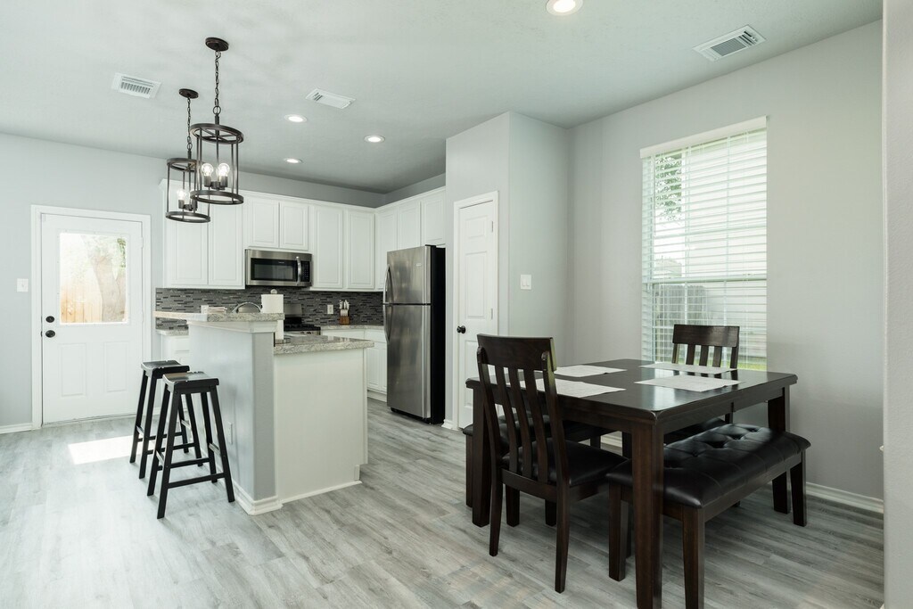 Location,Location,Location! Beautifully updated two story townhome,minutes from the I-45 corridor. Downstairs has lots of natural light with an open concept for a flexible work/life space- stainless steel appliance package,(refrigerator,washer and dryer included),granite counters,and a downstairs powder room. Downstairs flooring is a DuraLUux Luxury Vinyl,stairs leading to second floor are hardwood. Primary bedroom and bath,secondary bedrooms and bath,utility room located upstairs with blinds throughout. MLS# 9793389