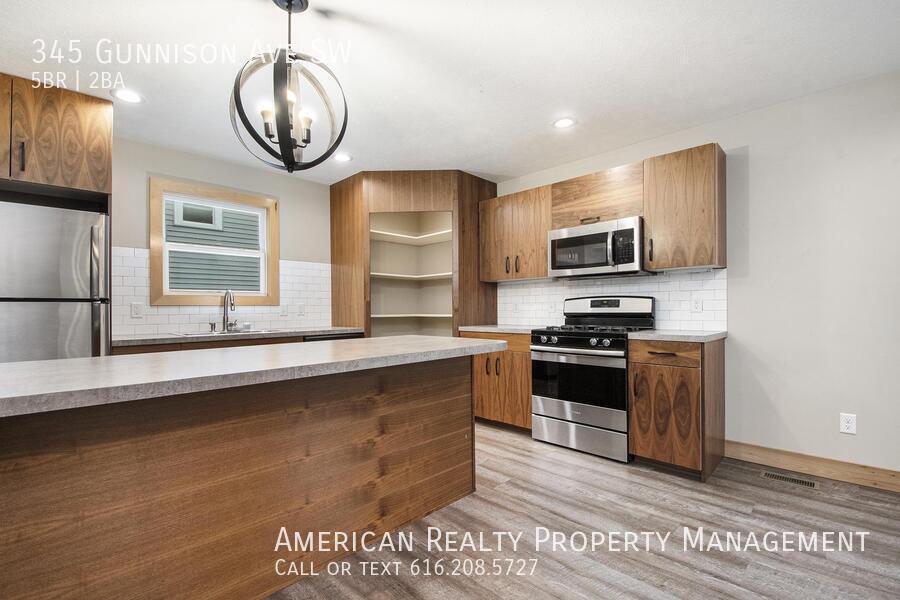 AVAILABLE MAY 2026! You will not believe how gorgeous this 5 bedroom/2 bathroom home is. Take a look at the photos and the virtual tour, even they do not do this home justice. This property was renovated with the utmost craftsmanship, along with the consideration of energy efficiency. Let this huge home be your haven from a busy day. Warm wood and modern style will put you at ease, along with impressing anyone that you have over. Being on the West Side means you are close to all the great things Grand Rapids has to offer such as the GVSU Pew Campus, The BOB, and Van Andel Arena. Call us today to be amazed. Check out the rest of our available properties at american- Range Stove